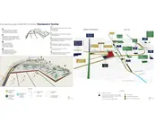 Healing is addressed through alternative health, gathering, communal dining, performance, and celebration. Art installations are mixed with cultural and ecological history garden exhibits that memorialize the Collective Memory of the land and the people, from the earliest Chumash land stewards to the Black jazz musicians of the First Great Migration, the Japanese farmers who grew strawberries before the Japanese-American internment, to the Mexican and Italian laborers, like Simon Rodia, who created the Watts Towers as a gift to his beloved neighbors. A public plaza serves as a gathering place for new workers, The Food Commons Farmers Market, and a place for cultural events to allow for different voices within the landscape and demonstrate a 'shifting, steady mosaic' that is the new understanding of ecology. This mosaic draws from the vernacular of local art and culture and is reflected in the materials (and the graphics) that reflect the vibrancy and warmth of South LA.