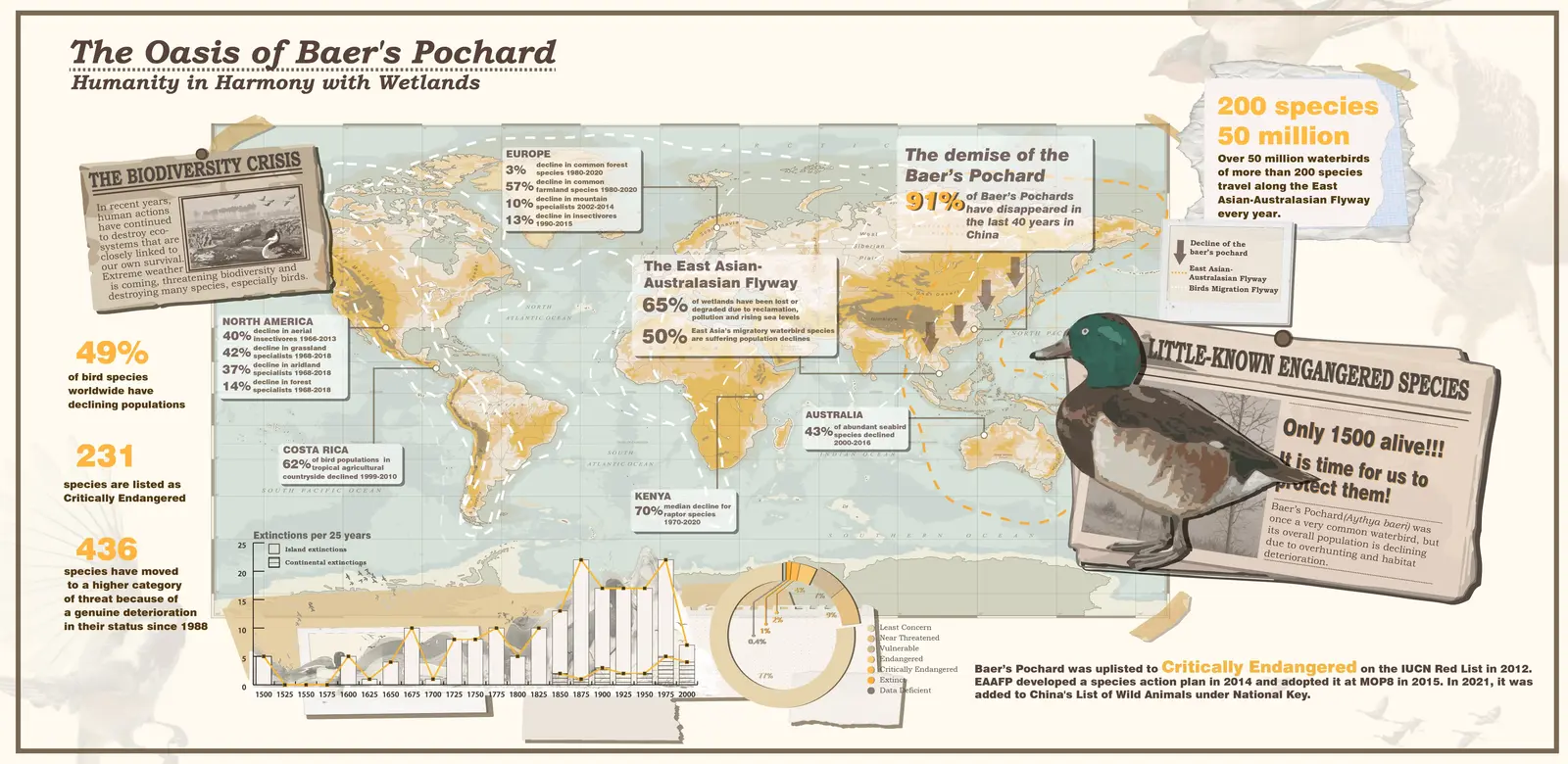 Human activities pose a tremendous threat to the planet's biodiversity. It is crucial to explore how to balance ecology and industry.This project focuses on the critically endangered species of Baer's pochard. We have chosen a typical wetland park in Wuhan, the southernmost breeding ground of the species, situated in an area where traditional agriculture conflicts with nature conservation. We propose a comprehensive strategy to address the needs of various stakeholders, including how to conserve the Baer's pochard and increase its population while utilizing traditional Chinese farming wisdom to maximize economic benefits for local residents and achieve sustainable development. The strategy also involves redesigning the wetland park.