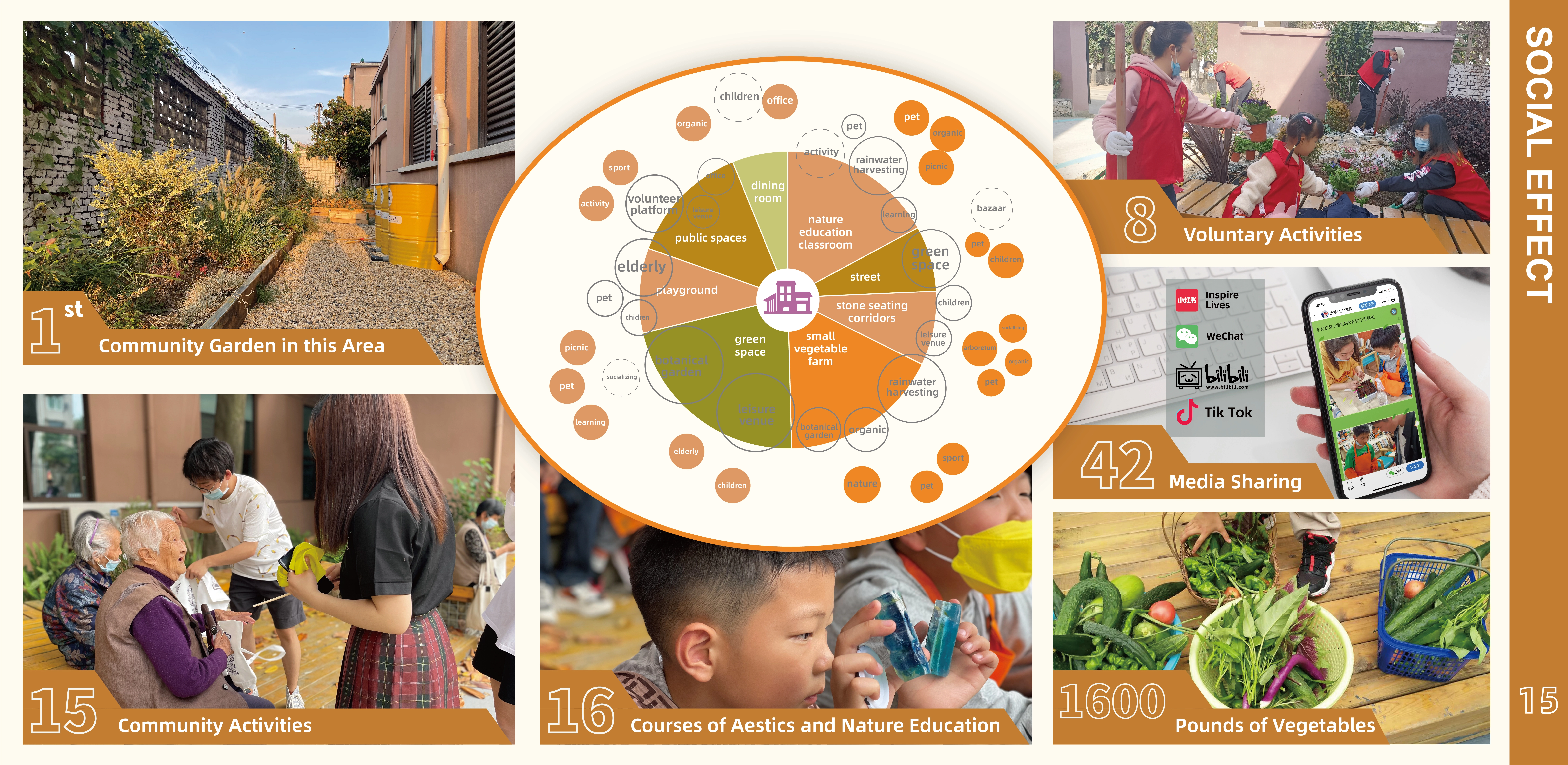 The project encourages interpersonal interactions so as to build a social community and foster the revival of the communities. By offering the underprivileged equal access to green infrastructures and improving their living environment, this project draws public attention to the declining communities, sparks the confidence in local residents and engages them in the rebuilding of their community environment. In addition, it promotes sustainable development concepts such as rainwater management, low-impact design, edible gardens, and nature classrooms in our society.