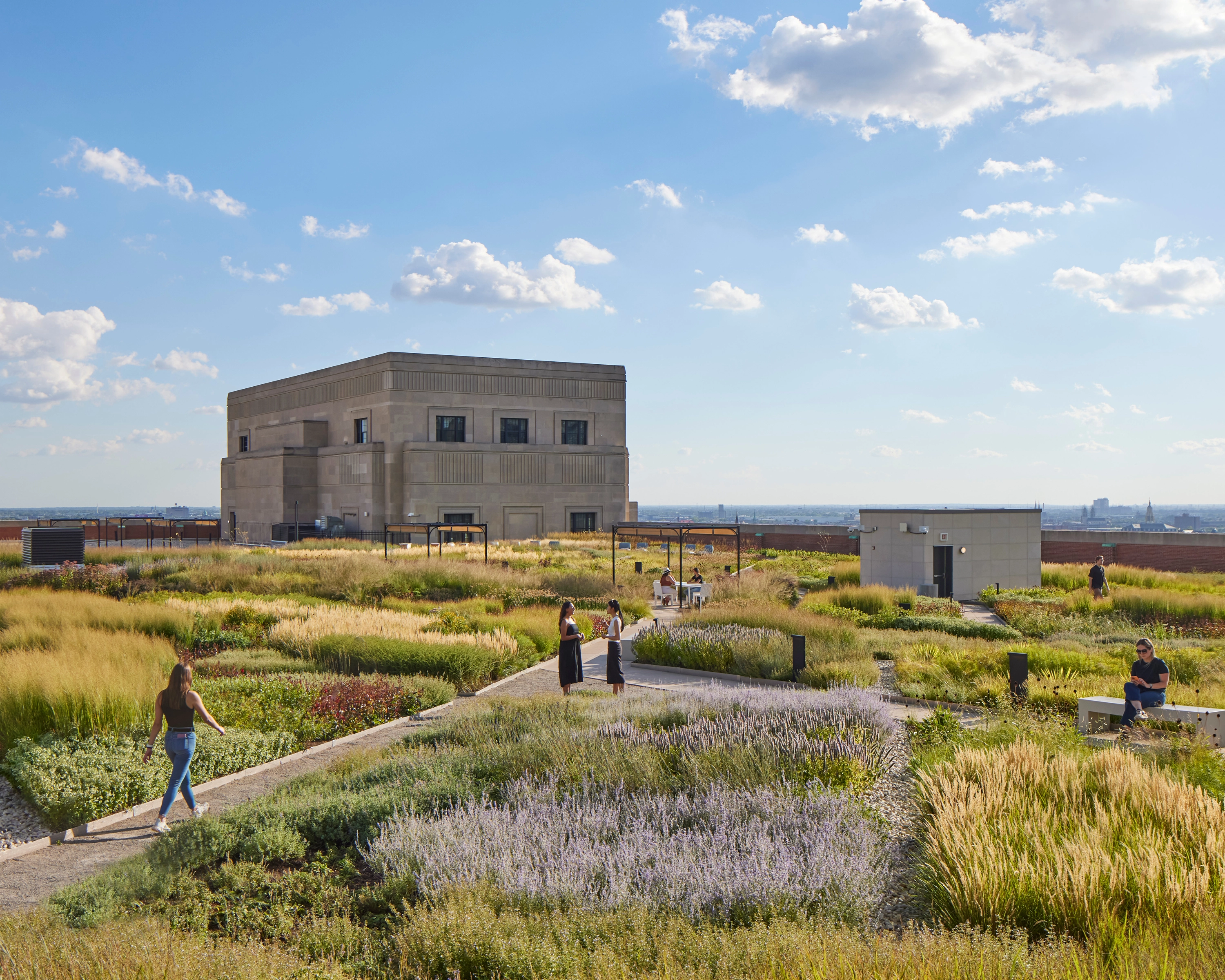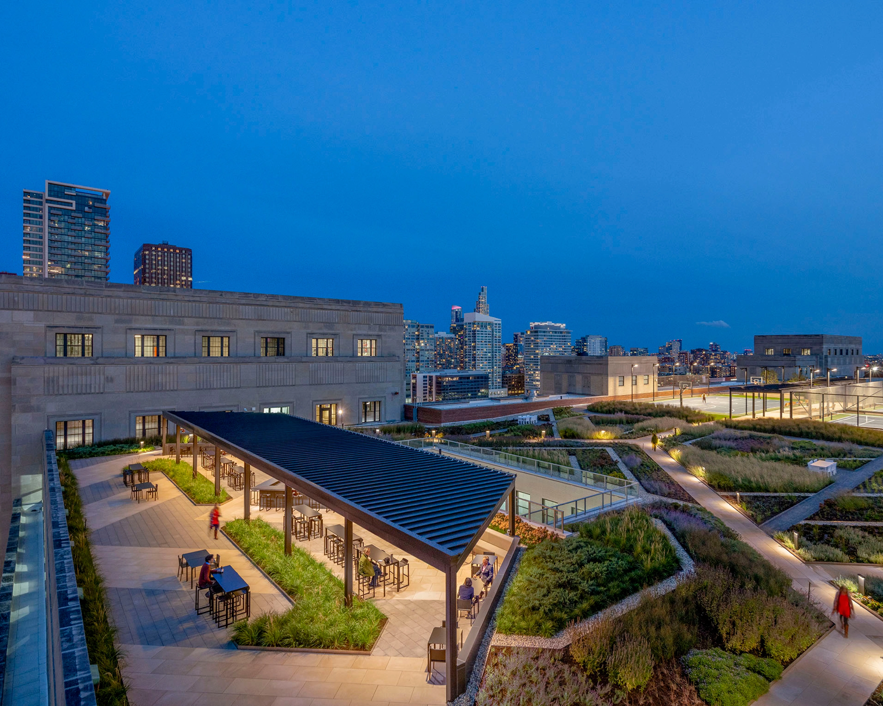 The most sustainable building is the one that’s already built. This statement rings true through the repositioning efforts at the iconic Old Chicago Post Office. Leveraging the building’s vast roof area as an asset, the Meadow has become the nation’s largest private rooftop garden enabling the space to become a park unto itself. Tenants actively and passively use the space daily to connect with nature amidst an urban backdrop; weddings, conferences, and community events are hosted atop the building year-round. Designed with sustainability in mind, the rooftop uses innovative soil mixes, stormwater filtration, with 40K+ plants, bee colonies, and more to provide a formerly desolate urban area with 3.5 acres of new, richly planted green space.