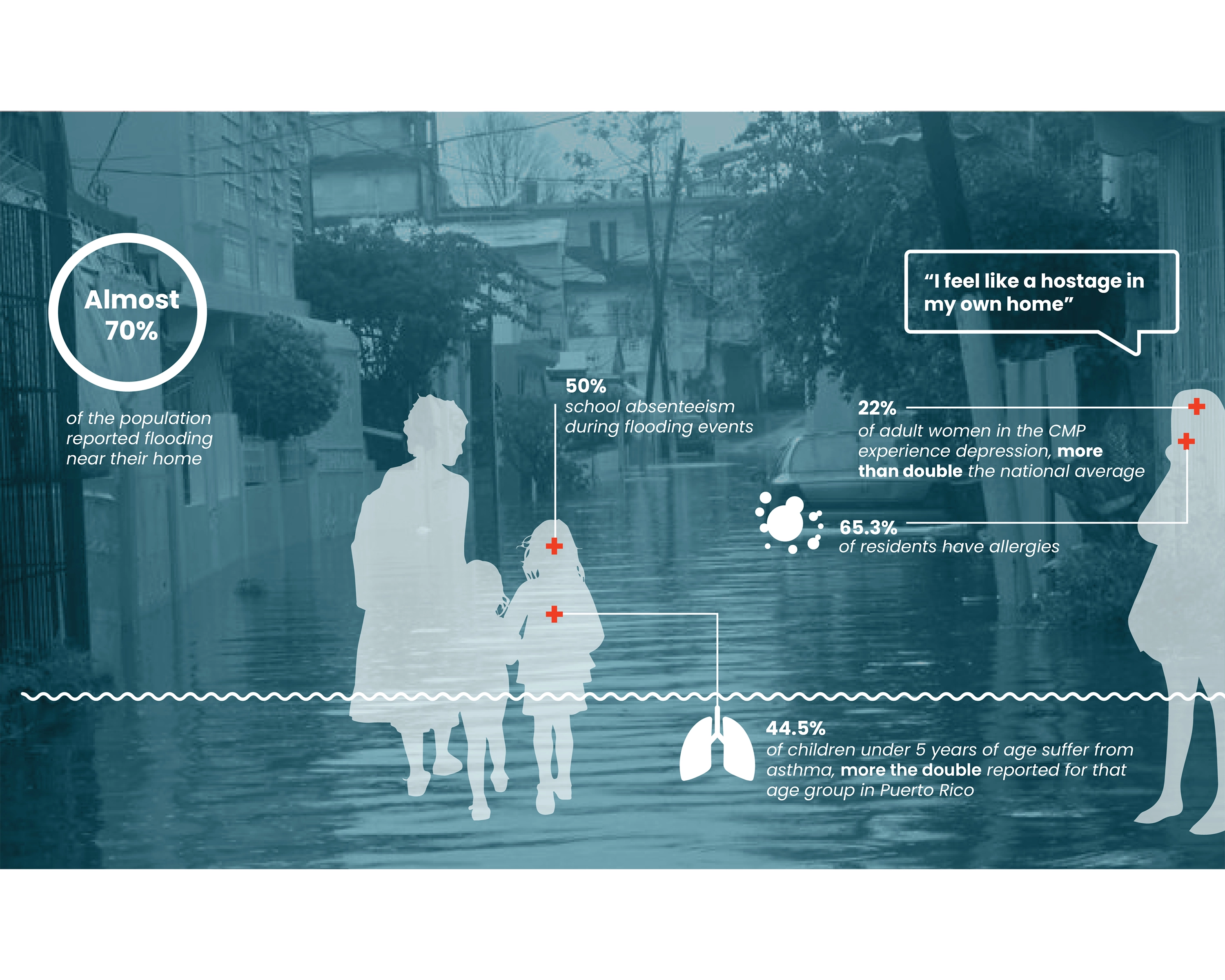 The eight communities of the Caño Martín Peña District were built piece-by-piece by their residents who recognize that their greatest asset in the face of a changing climate is their social capital. The Caño Martín Peña Comprehensive Infrastructure Master Plan was developed to serve the communities’ needs by improving their collective health and quality of life, incorporating nature-based strategies and climate change risk analysis to develop holistic solutions while safeguarding the communities’ deep social bonds as the fundamental link. The plan is grounded in a social and environmental justice framework, surveys and consultation with residents and community leaders, as well as coordination with Commonwealth and Federal agencies.