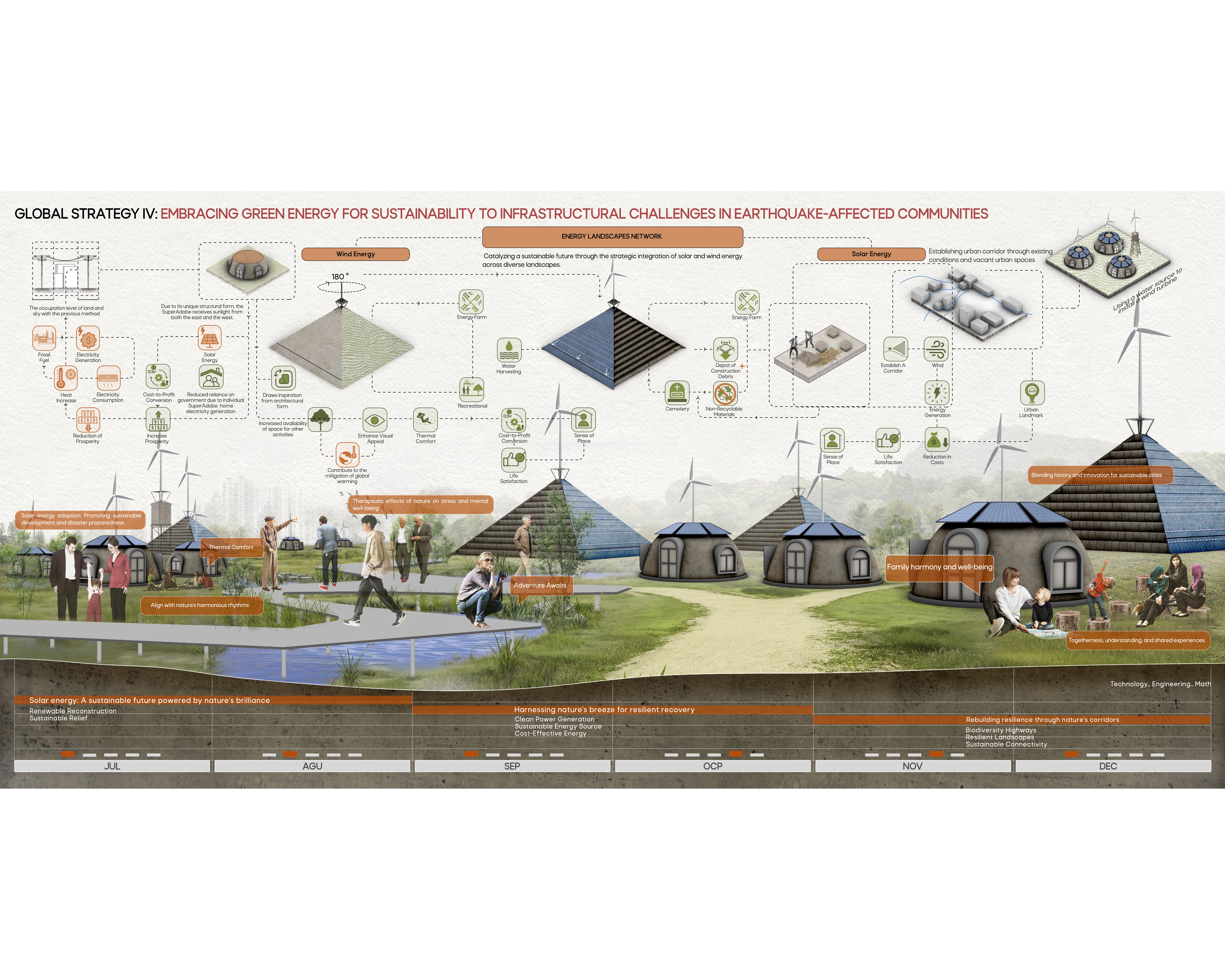 Situated in the southeastern and western peripheries of Gaziantep, the proposed temporary settlement site encompasses an area of 22,871 square kilometers. This strategic selection presents a haven for the earthquake-stricken community due to its advantageous proximity to major city thoroughfares. Furthermore, the site land morphology, fertile soil, and existing land use it ideal for temporary settlement development.Project Global Strategies