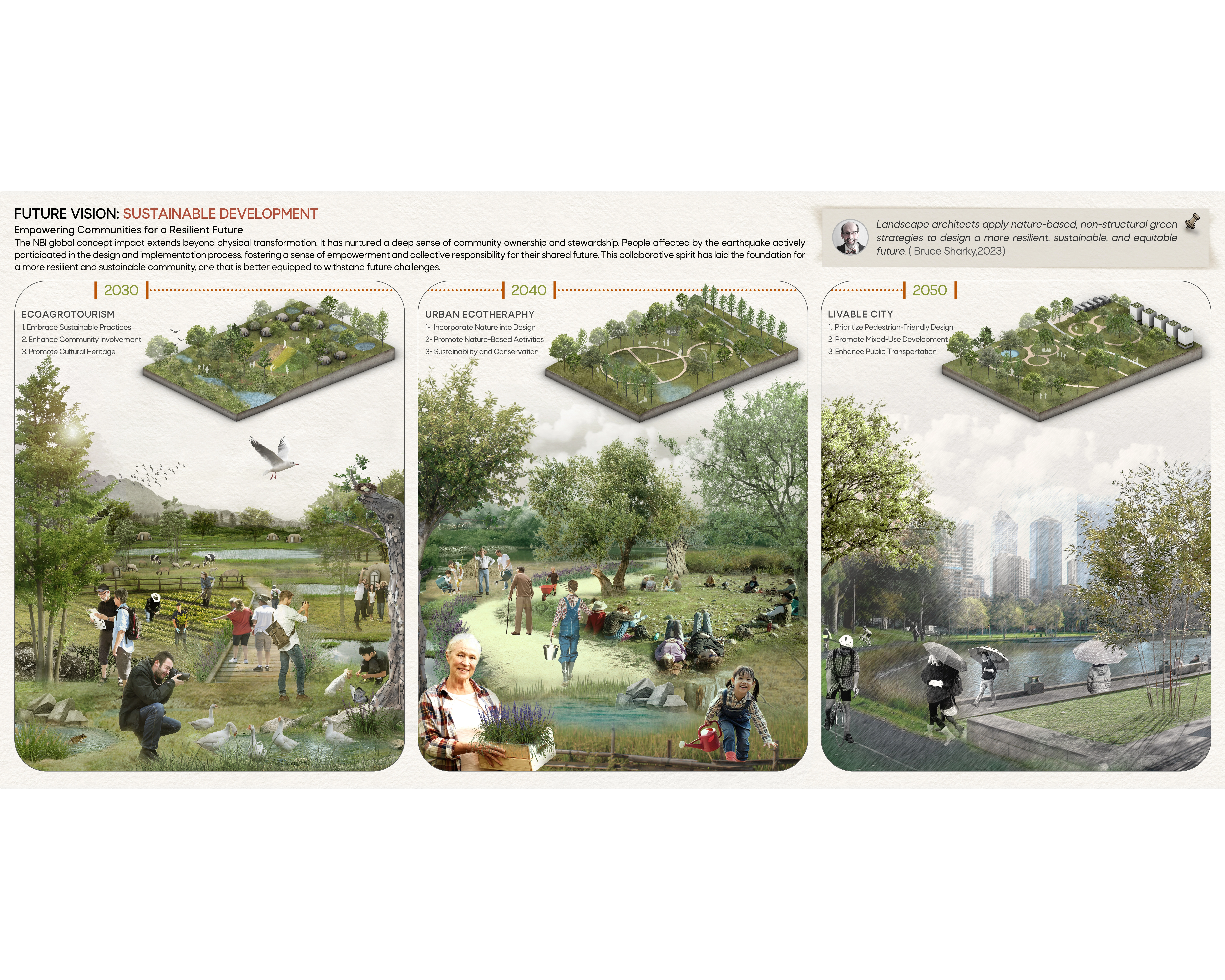 - Bruce Sharky - Professor Emeritus,In 2023, Professor Bruce Sharky provided us with invaluable guidance on the role of nature-based design and sent us a copy of their book of the same name(Nature-Based Design in Landscape Architecture).