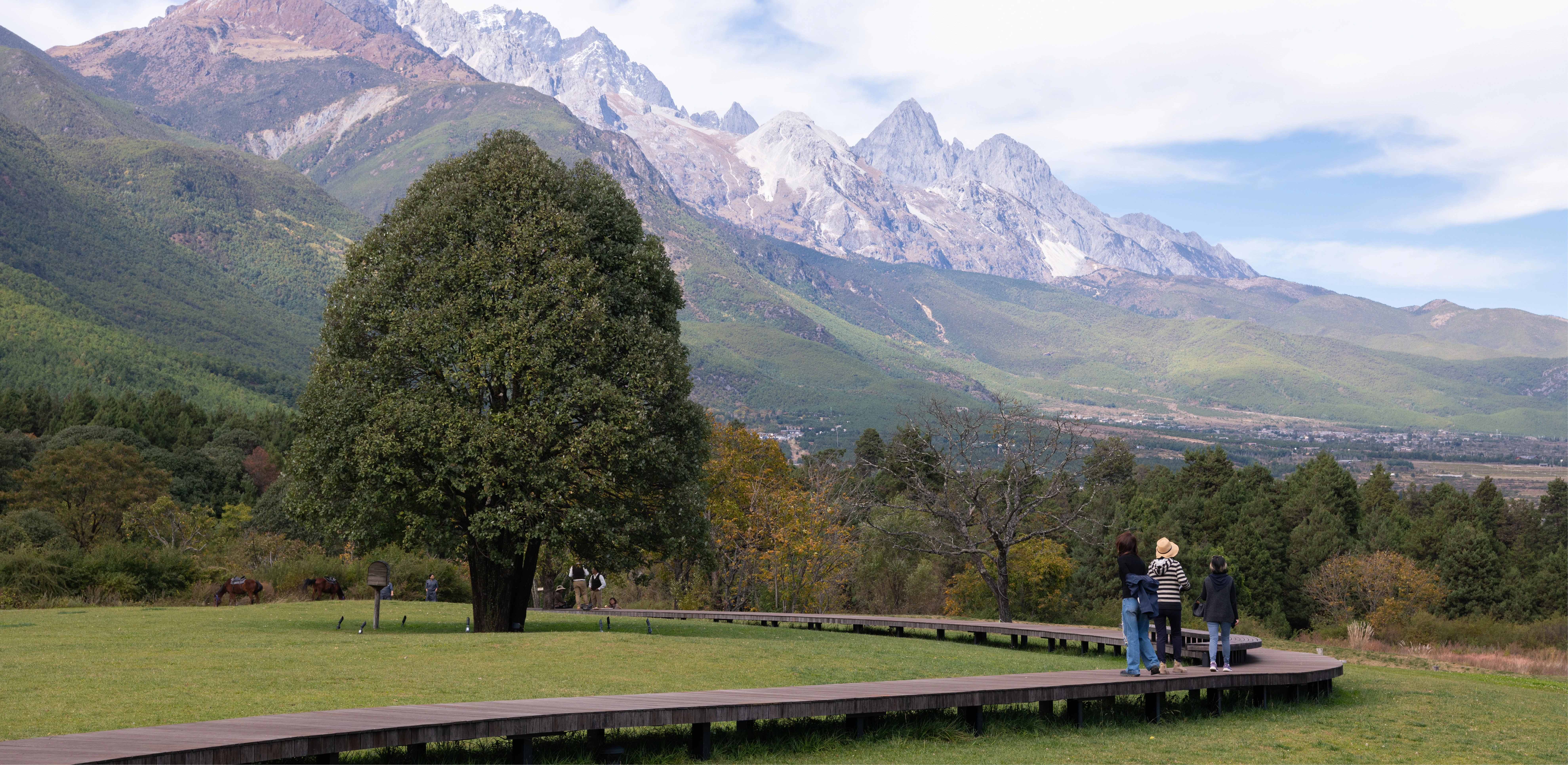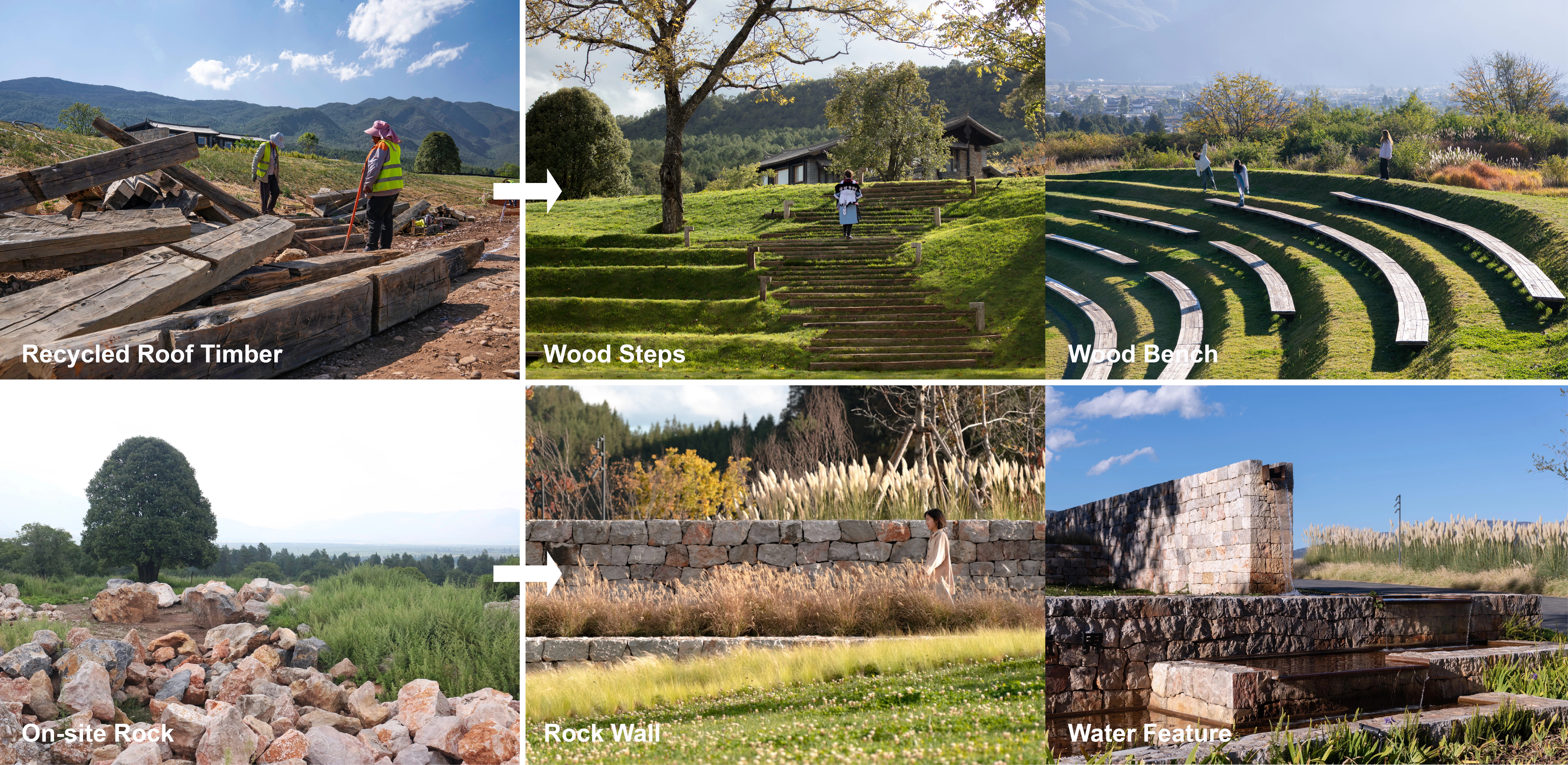 As an elegant piece of land art, the amphitheater is thoughtfully positioned due north to provide a view of the sacred Yulong Snow Mountain. It accommodates great opportunities for tribal sculptors to exhibit their excellent works and becomes a welcoming outdoor social space for locals. During annual traditional festivals, the amphitheater becomes an immersive and interactive setting for experiencing Naxi dances and music.