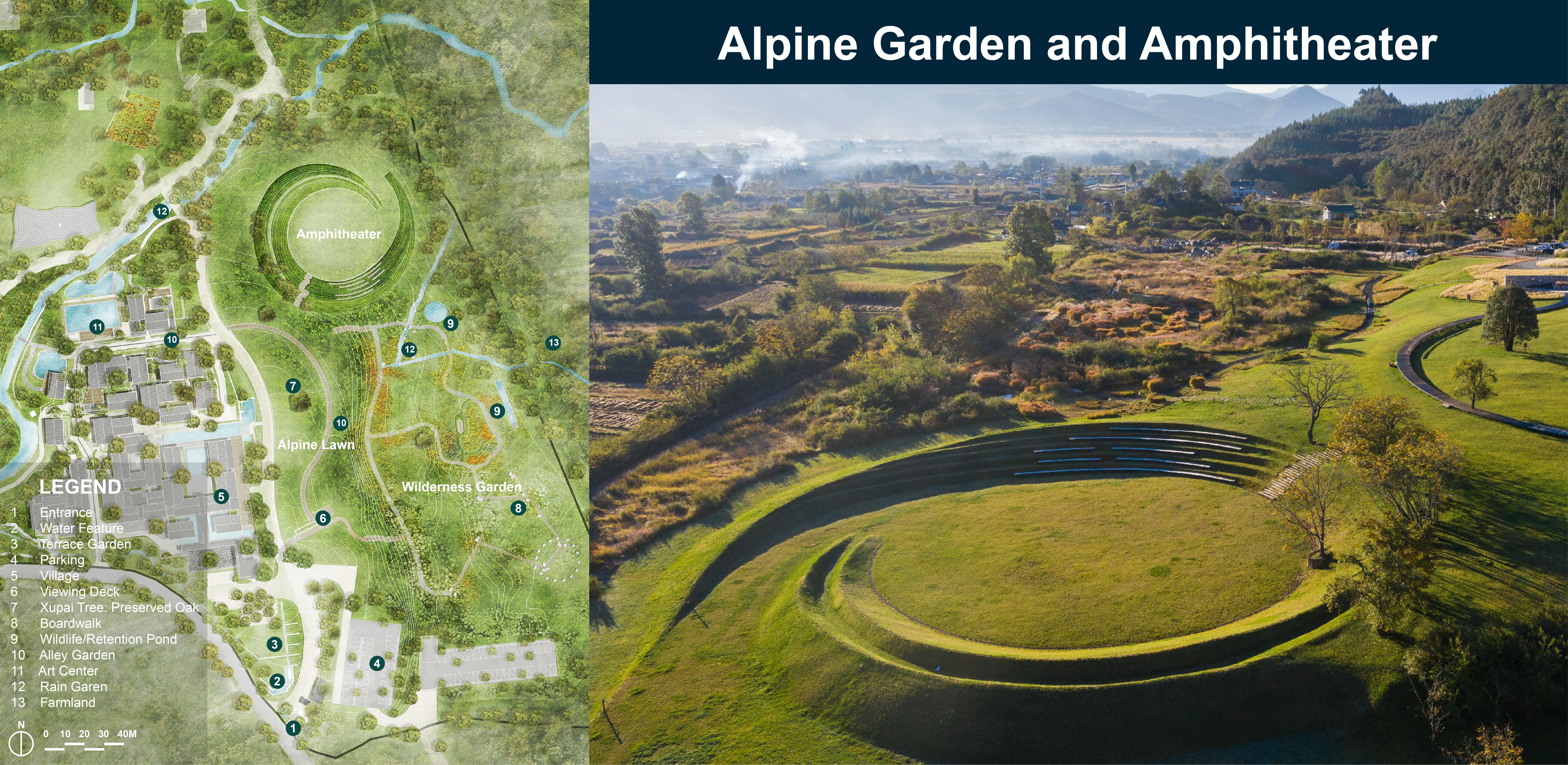 Located 5km from Yulong Snow Mountain, a UNESCO Natural Heritage Site in the Pan-Himalaya Region, this 6-hectare project is designed to function as a self-sustaining ecosystem and celebrates the beauty of alpine plants. It also features a stormwater system to safeguard Baisha, a World Cultural Heritage town, from flooding.