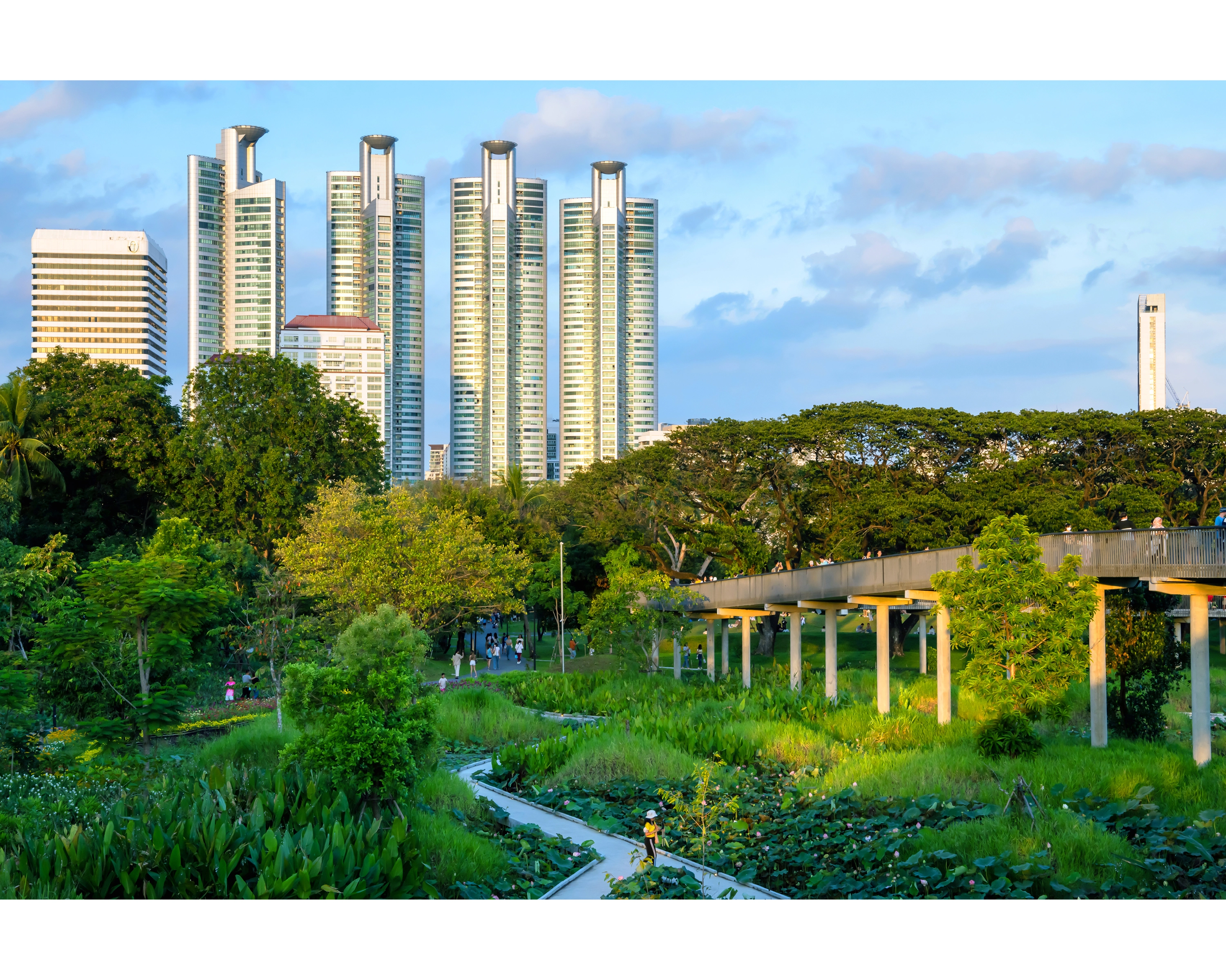 In the bustling urban heart of Bangkok, a former tobacco factory has been transformed into a low-maintenance regenerative system that is climate resilient, filters contaminated water and provides much-needed wildlife habitat. In addition, Benjakitti Forest Park now provides the largest public recreational space for residents of downtown Bangkok and has become a new cultural symbol for the capital city. The project, completed at a low cost in a compressed timeframe of just 18 months, offers a replicable modular approach to urban engineering that can transform the lifeless, concrete-paved ground into a resilient living ecosystem that provides a full range of ecosystem services.