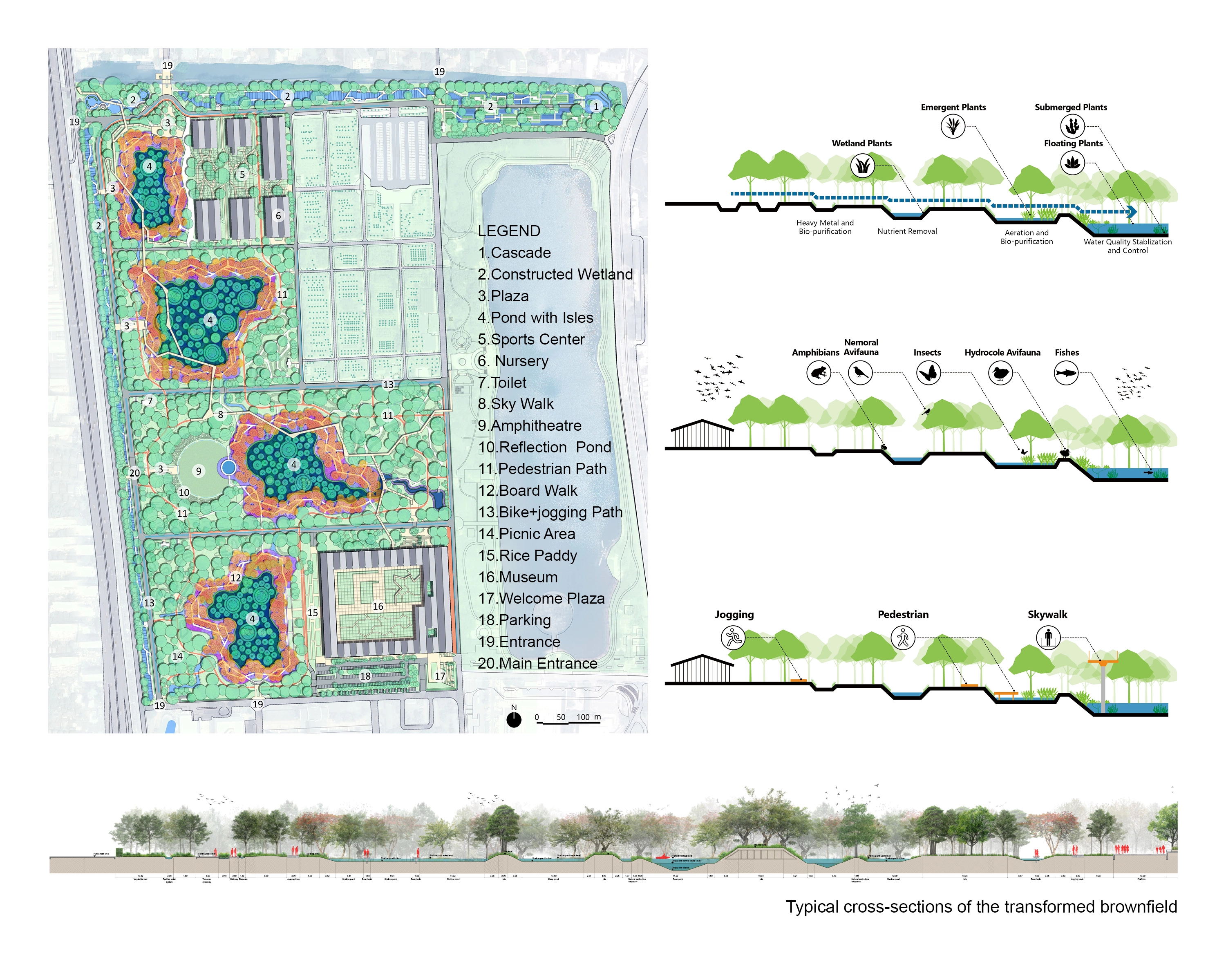In addressing the multiple challenges of the site, the project was envisioned as a central park capable of providing holistic ecosystem services to the city, including a demonstration of a nature-based solution for urban flood control, as well as providing badly needed public space for daily recreational activities and other cultural services. Three strategies guided our work to meet these objectives: