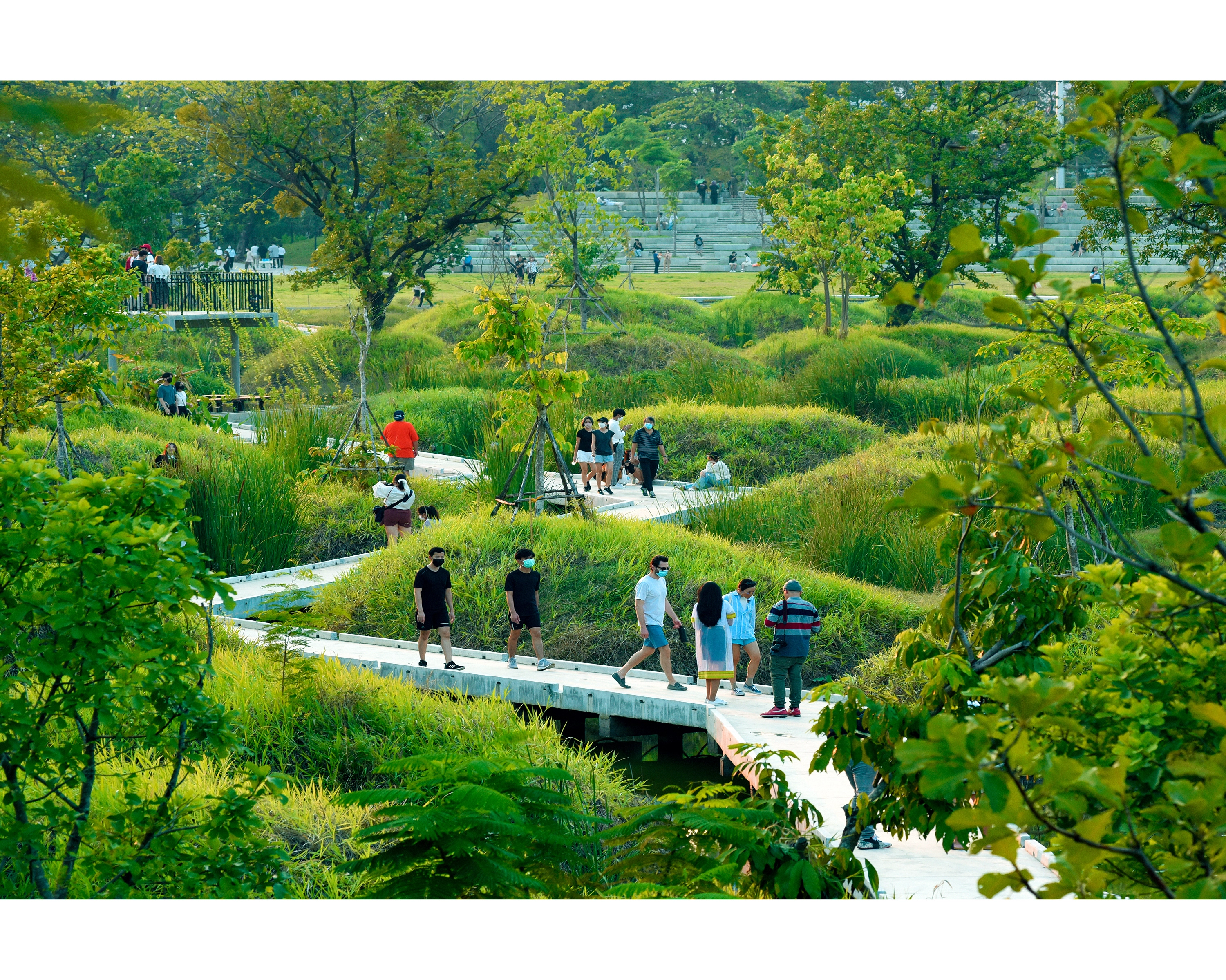 Creating immersive places for people: Multiple boardwalks and a skywalk were designed that tie together the entire park and create a unique immersive experience amidst the tropical foliage.