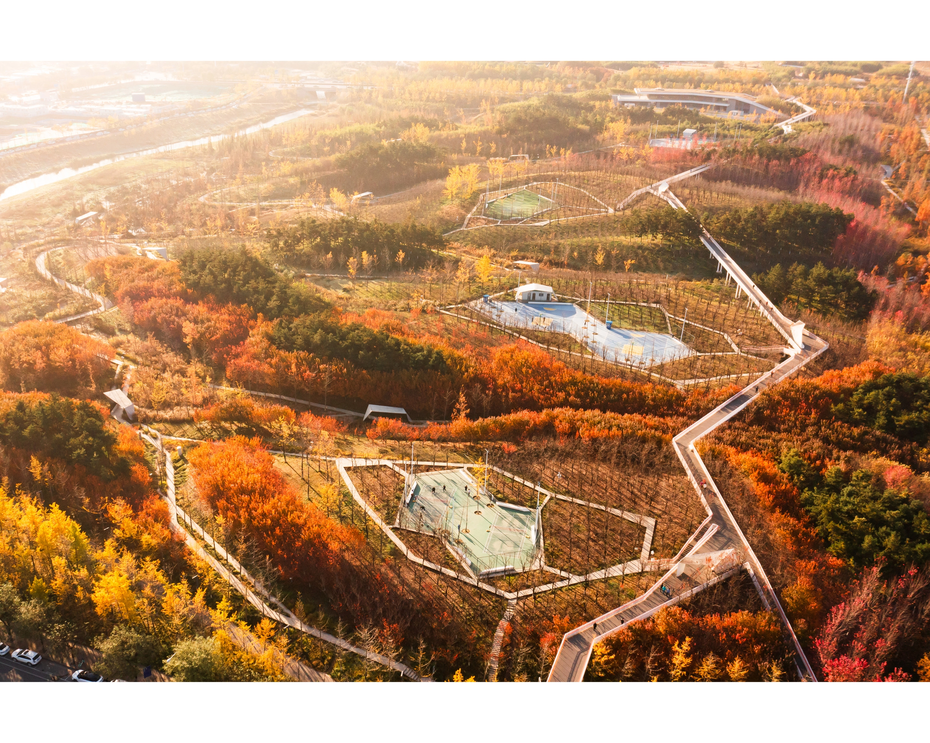 Given the large scale of the site and the short timeline mandated by the local government, several challenges emerge. These include managing the earthwork and topography, transforming the lifeless concrete drainage, and rapidly developing a low-maintenance, extensive park.