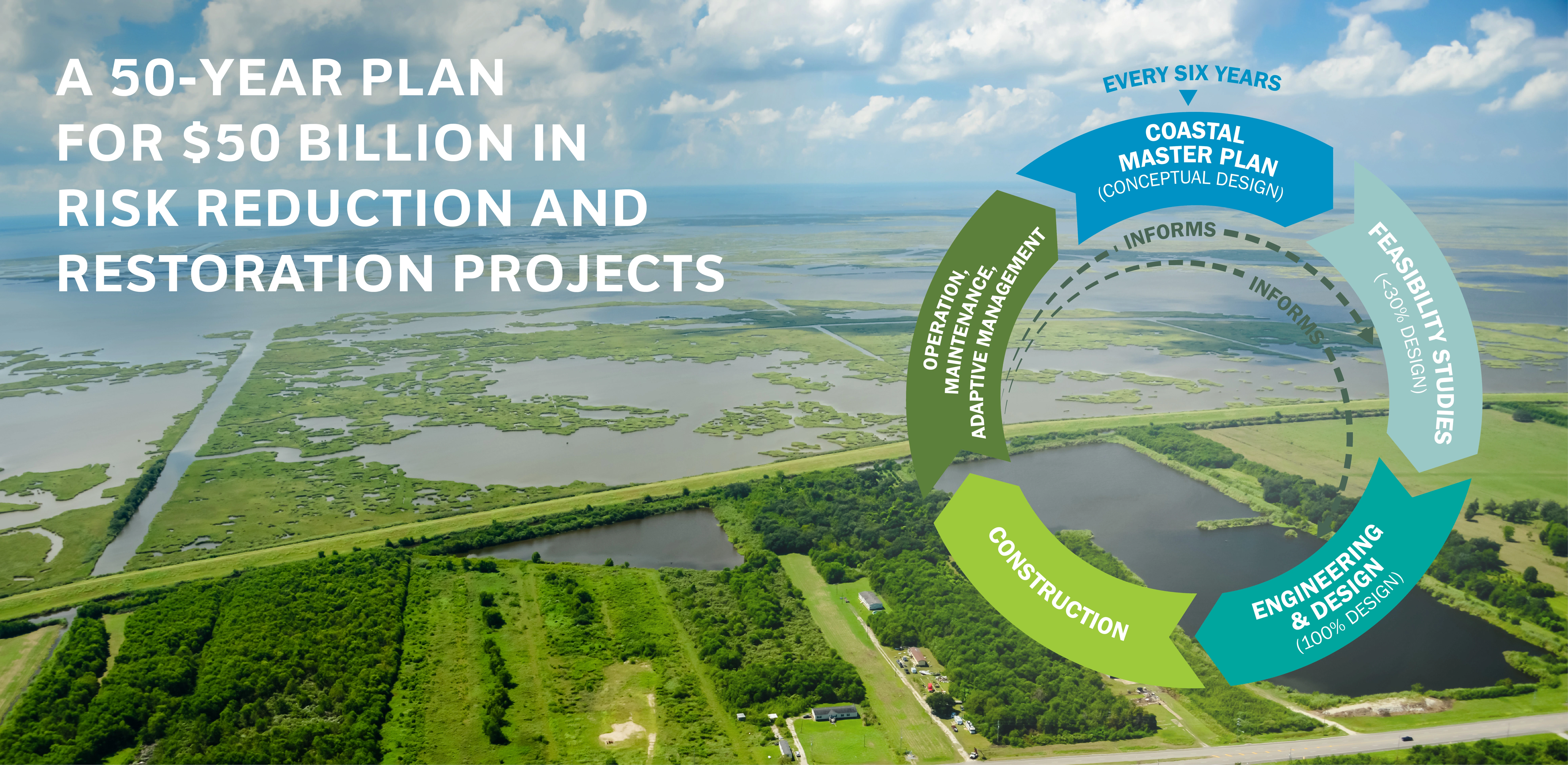 Overall, the master plan functions as a long-term guide to restoration and risk reduction investments throughout the state, undertaken in parallel to related efforts to promote sustainable commercial and recreational activities across the coast.