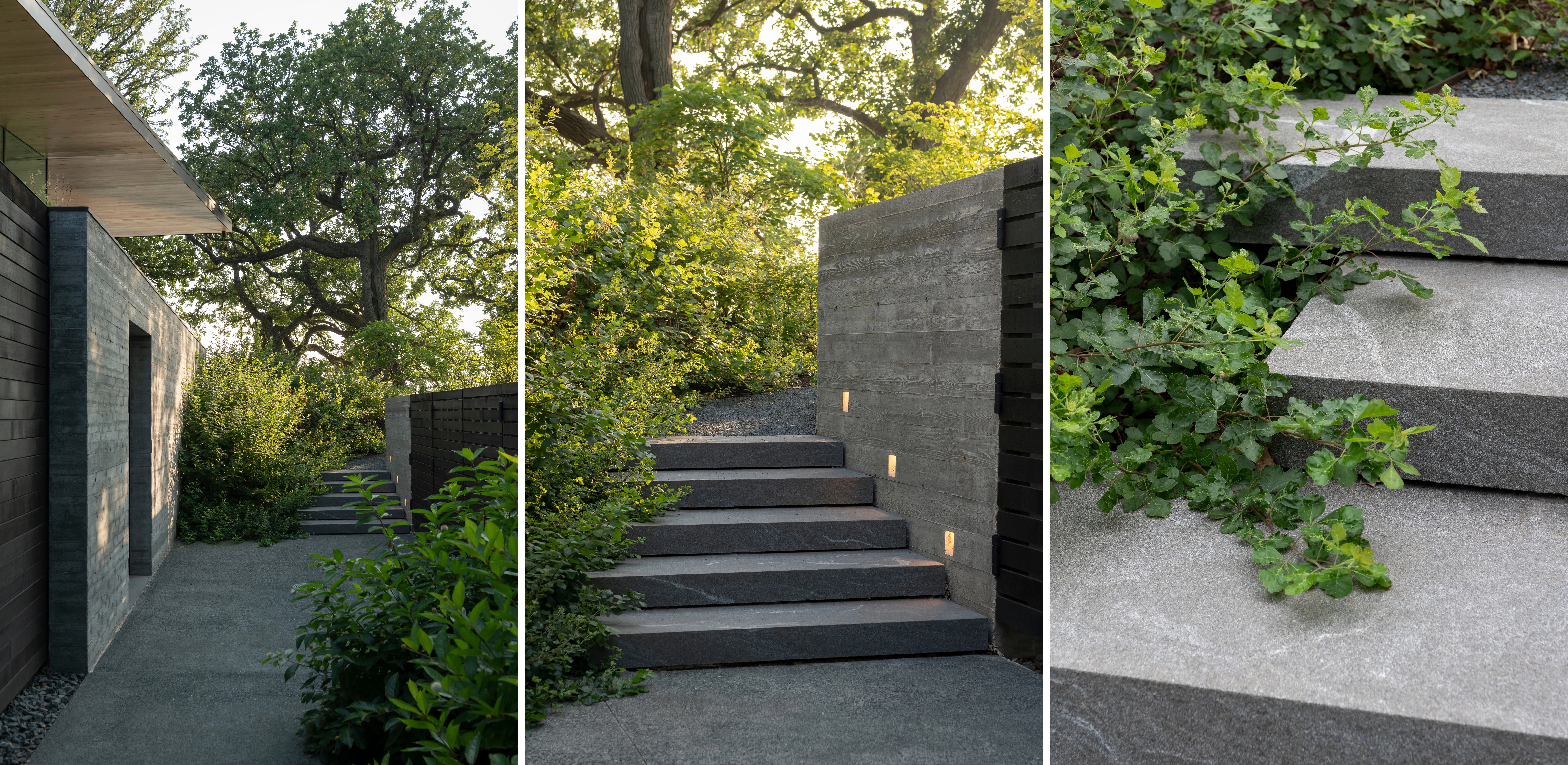 The story of Trinity Road unfolded over the past five years and is fundamentally a story of fire resilience and succession of the surrounding forest. The garden was designed and the project considered completed when two wildfires ravaged the hills immediately surrounding the site. After the fires the landscape design team was brought in to create a new vision for the site that knit together the original planting and a new series of paths and gardens.