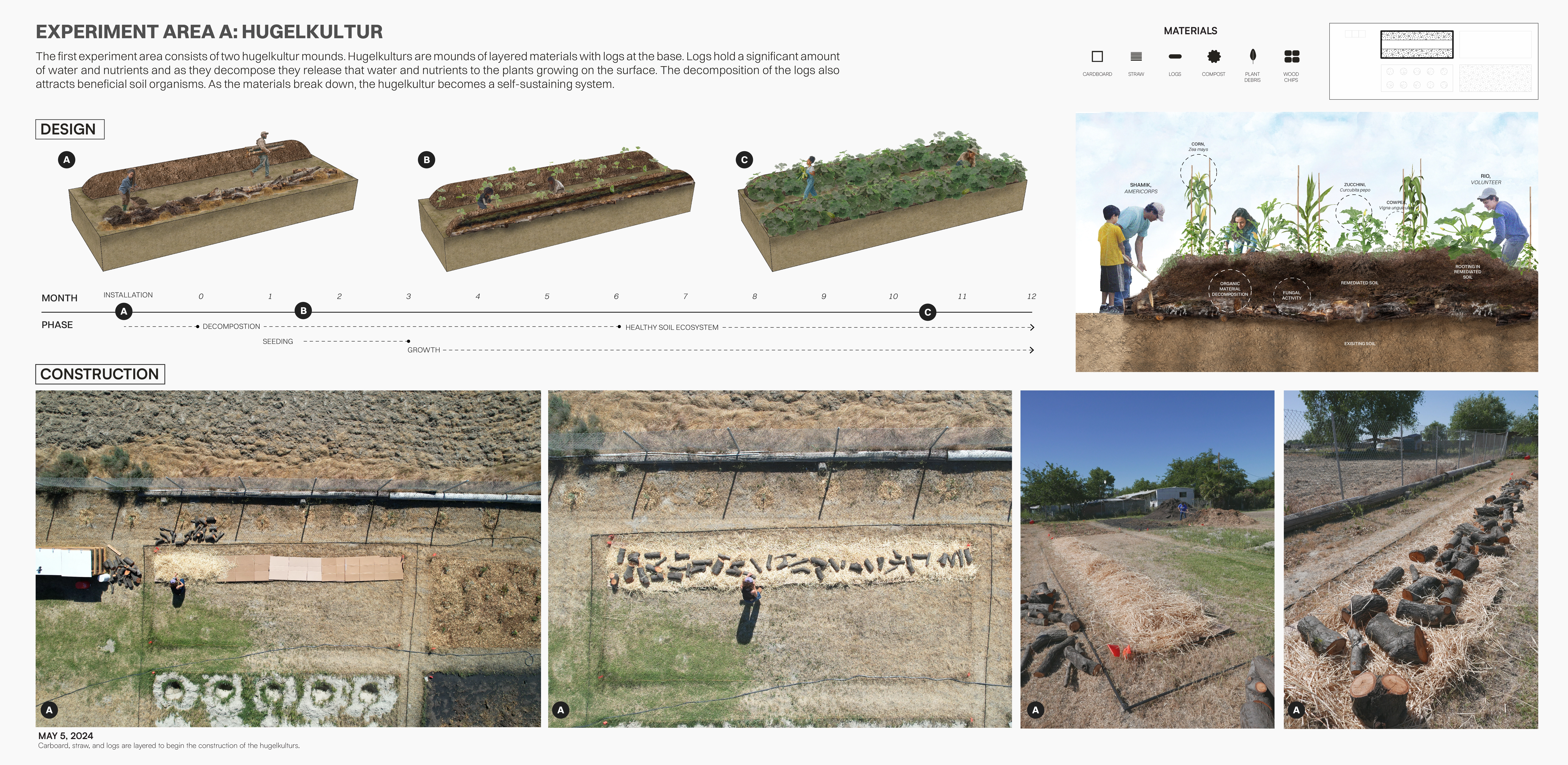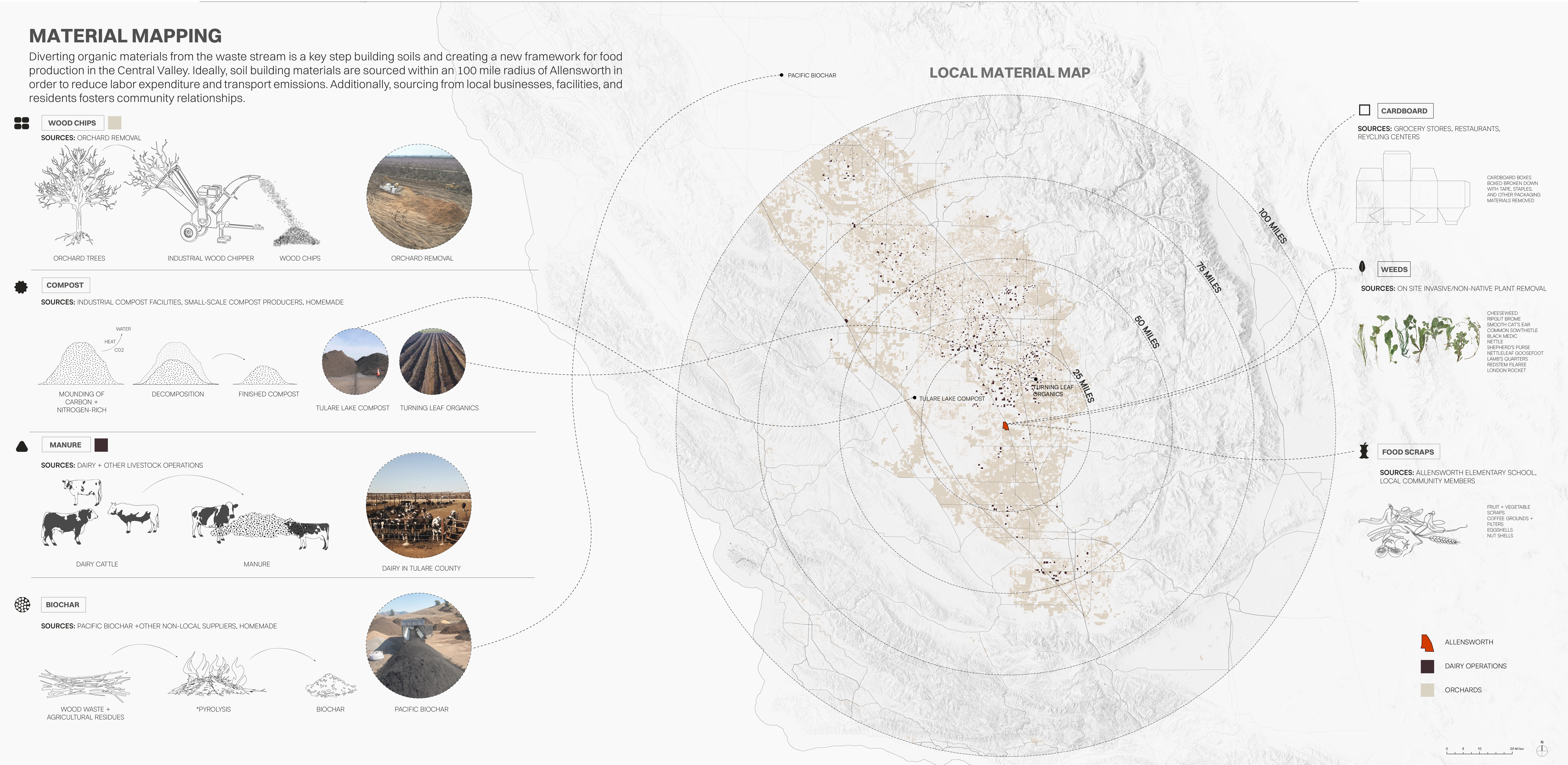 Current agricultural systems in California’s Central Valley cause extreme environmental degradation and contribute to ecological and public health crises. This project engages the Central Valley community of Allensworth in the development of a new place-based framework for regenerative agriculture. The Allensworth Agricultural Experiment Station (AAES) is a 4,000-square-foot site in Allensworth, CA, that investigates holistic and community-based techniques for food-producing landscapes. Its focus is on promoting ecological health, repurposing materials in the organic waste stream, increasing food sovereignty in the community of Allensworth, and reigniting its radical agrarian history.