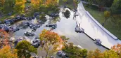 The project reimagined the unwelcoming, hardscape-dominated spaces into a much-needed park by increasing green space coverage from 25% to 73%. Given the constraints of the underground structure, the landscape design comprises three transitional parts: the urban forest of the old People's Park, the tree-lined space of North Plaza, and the perennial and grass-dominated rooftop of South Park.