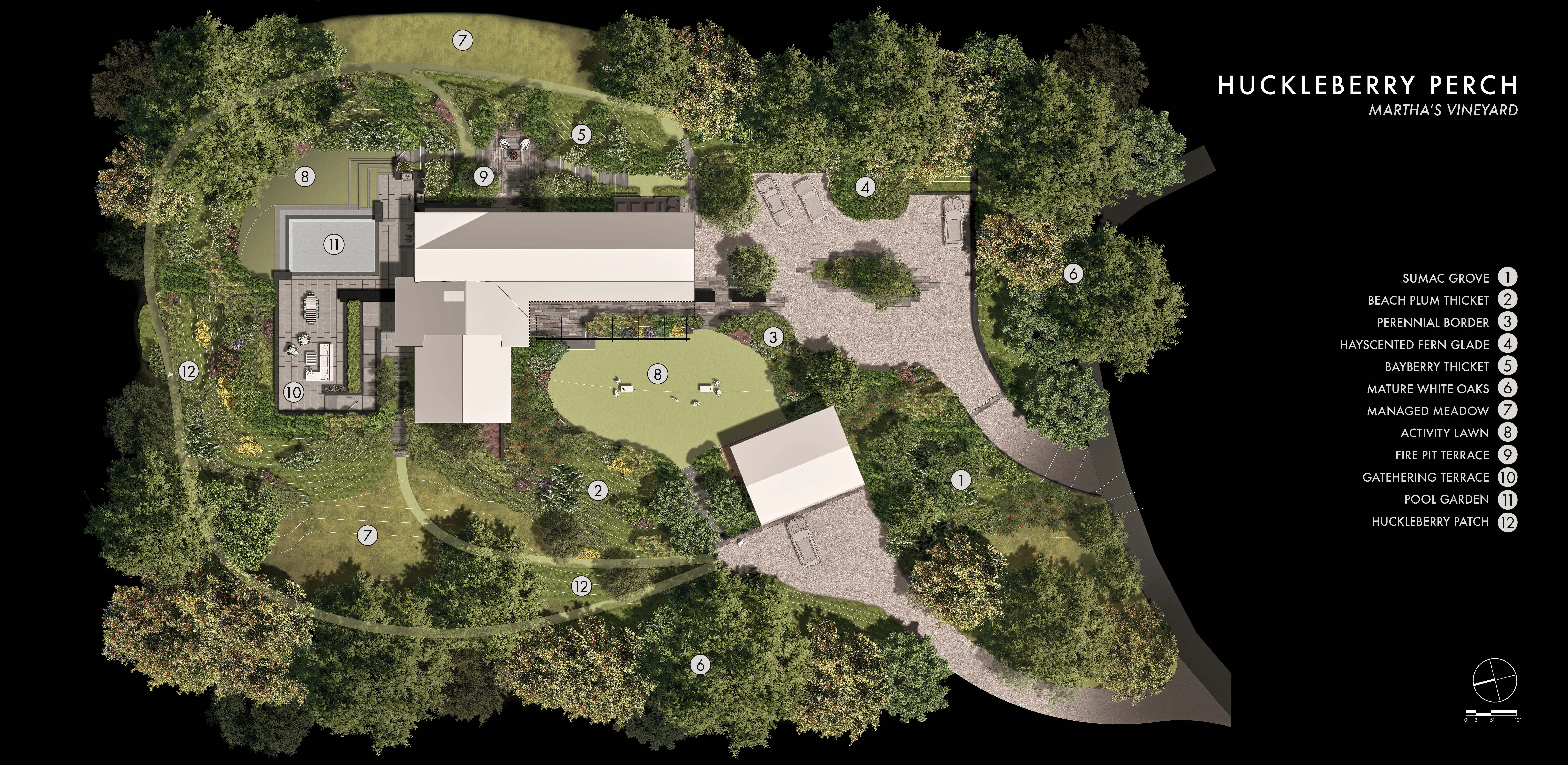 Huckleberry Perch presents a story of renewal and childhood landscapes reimagined for the future. Sitting atop one of the highest points on Martha’s Vineyard, the property has long been a place of discovery, with the client recounting most fondly the gathering of beach plums, blueberries, and huckleberries with his late grandmother.