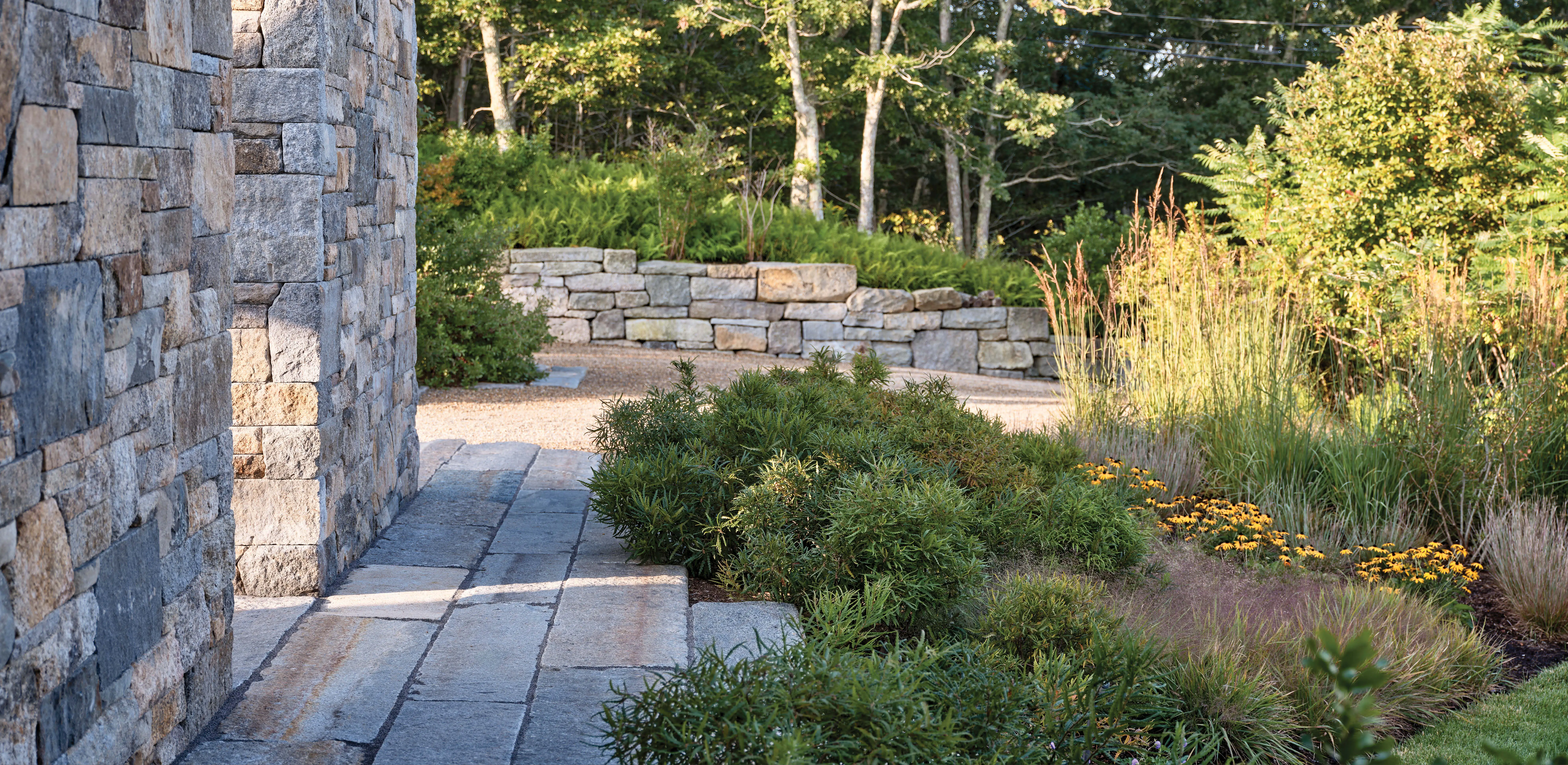From a bare hilltop, a client’s desire to revive sentimental connections to Martha’s Vineyard invited the submitting firm to undertake an experiment: weaving an ecologically rich garden into the steep sandy slopes of a disturbed site. Rather than replant a lost forest, successional plant communities—shrub thickets, meadows, and fern-covered embankments—root the home to ever-evolving surroundings while creating diverse habitat. Dry-laid stone walls and reclaimed granite paths navigate terrain, grounding the architecture in place. This layered, low-maintenance plant community proves resilience and beauty can emerge through thoughtful rehabilitation and careful stewardship, honoring both personal memory and family history.