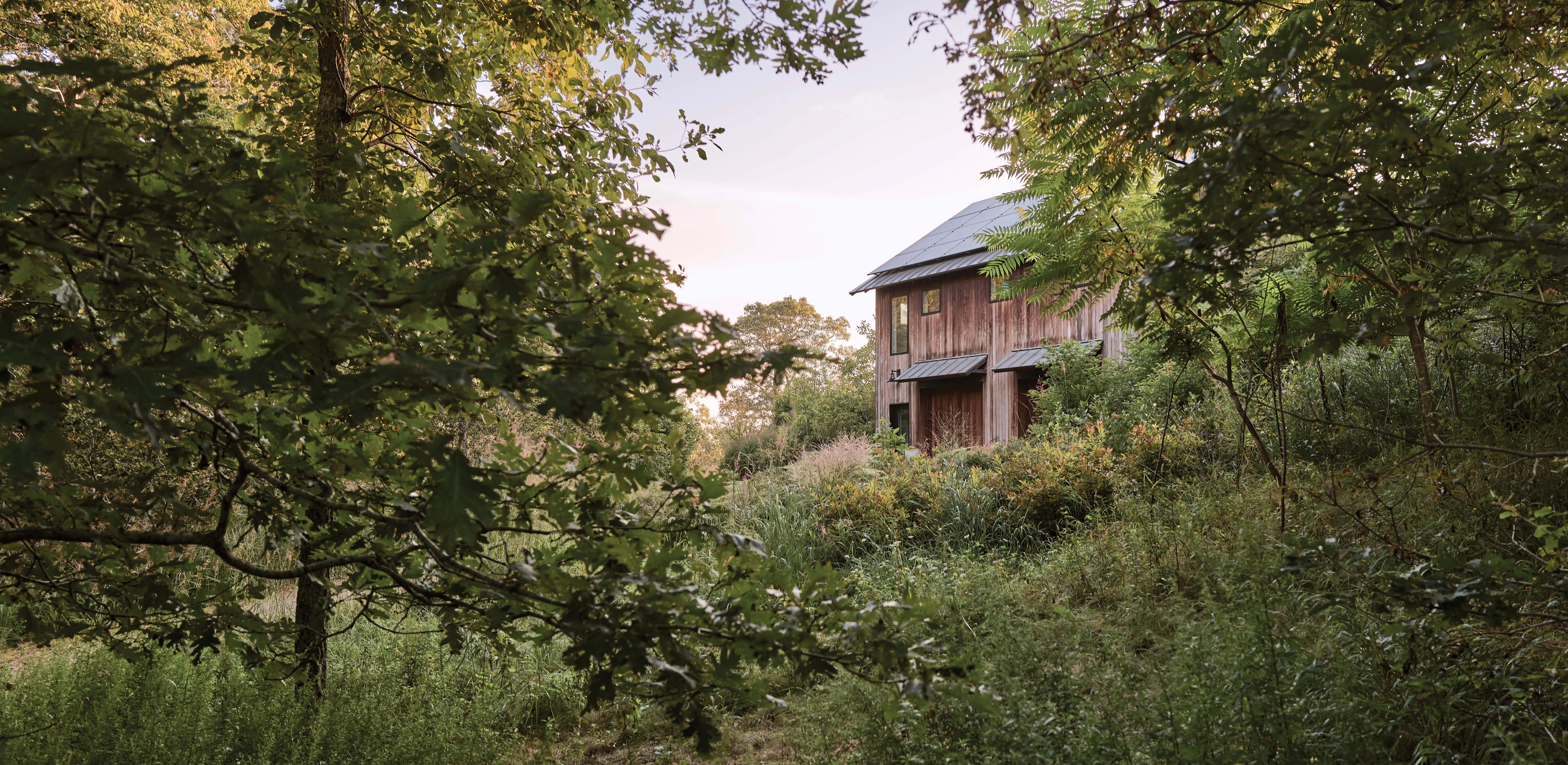 A central activity lawn—the gravitational core of the landscape —provides flexible space for gathering, recreation, and movement. Sun-loving drifts of Black-eyed Susan, Joe-pye weed, purple love grass, Russian sage, and goldenrod surround the space to ensure floral impact and pollinator support near the home. Overall, intentional plantings quickly give way to wilder, more spontaneous edges, where evolving colonies overlap with the surrounding forest.