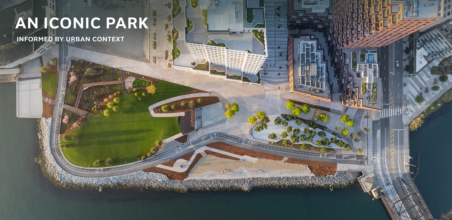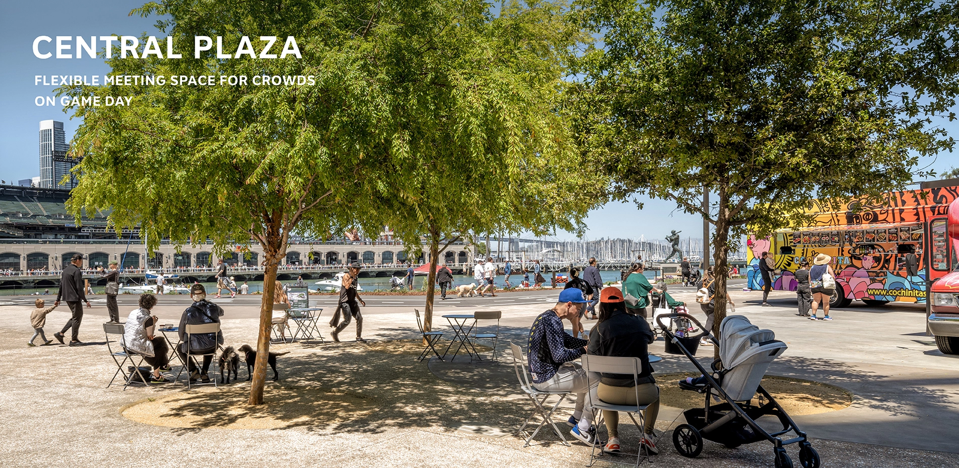 Foregrounding the living systems of the San Francisco Bay, China Basin Park is a 5-acre waterfront park designed and built as the heart of Mission Rock, a new mixed-use neighborhood across from Oracle Park, home of the San Francisco Giants. With dramatic views, diverse amenities, and strong connections to the wider community, China Basin Park is a symbol of optimism for the city. The park welcomes visitors on quiet mornings to experience intertidal ecology and birdwatching and transforms into a vibrant plaza on lively game days when it becomes an extension of the San Francisco Giants ballpark and a place to meet friends and watch the game.