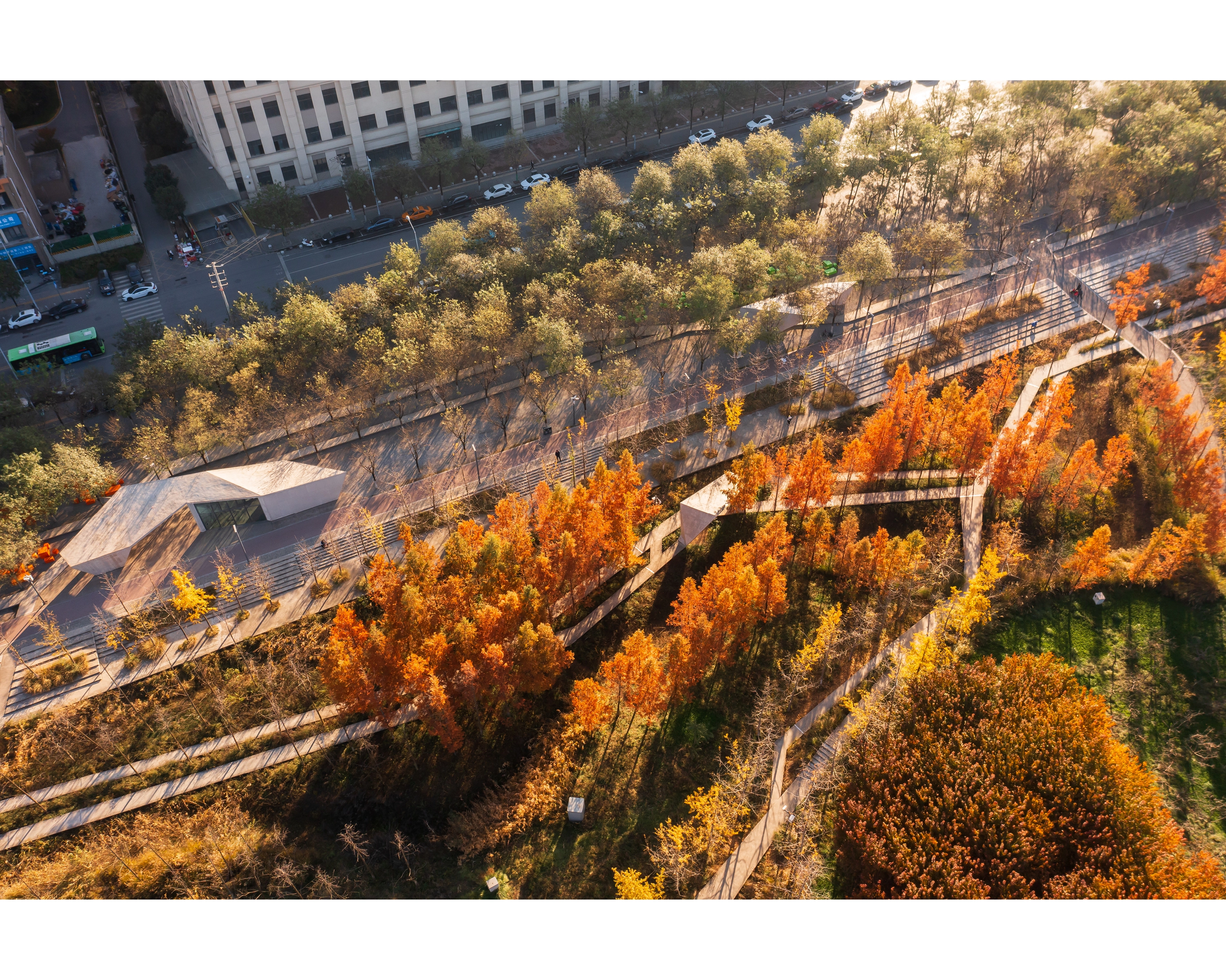 Social Function Integration: The green corridors are enriched with diverse amenities, including a nature center for education, playgrounds for children, a plaza for Taiji and group dancing, and plentiful seating. These amenities are allocated where most accessible which transforms the greenway into a communal hub for the city, catering to all ages and fostering community engagement.