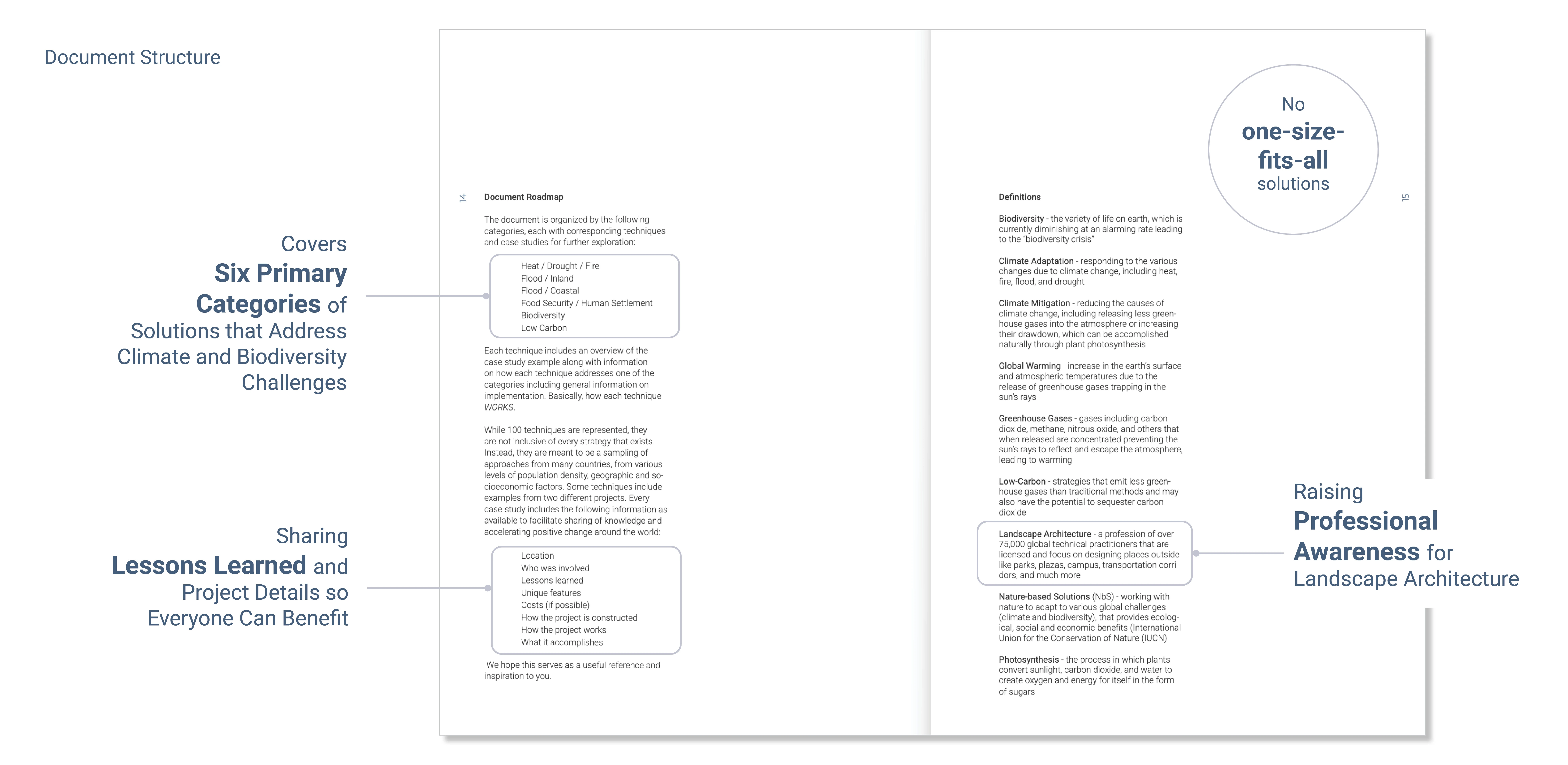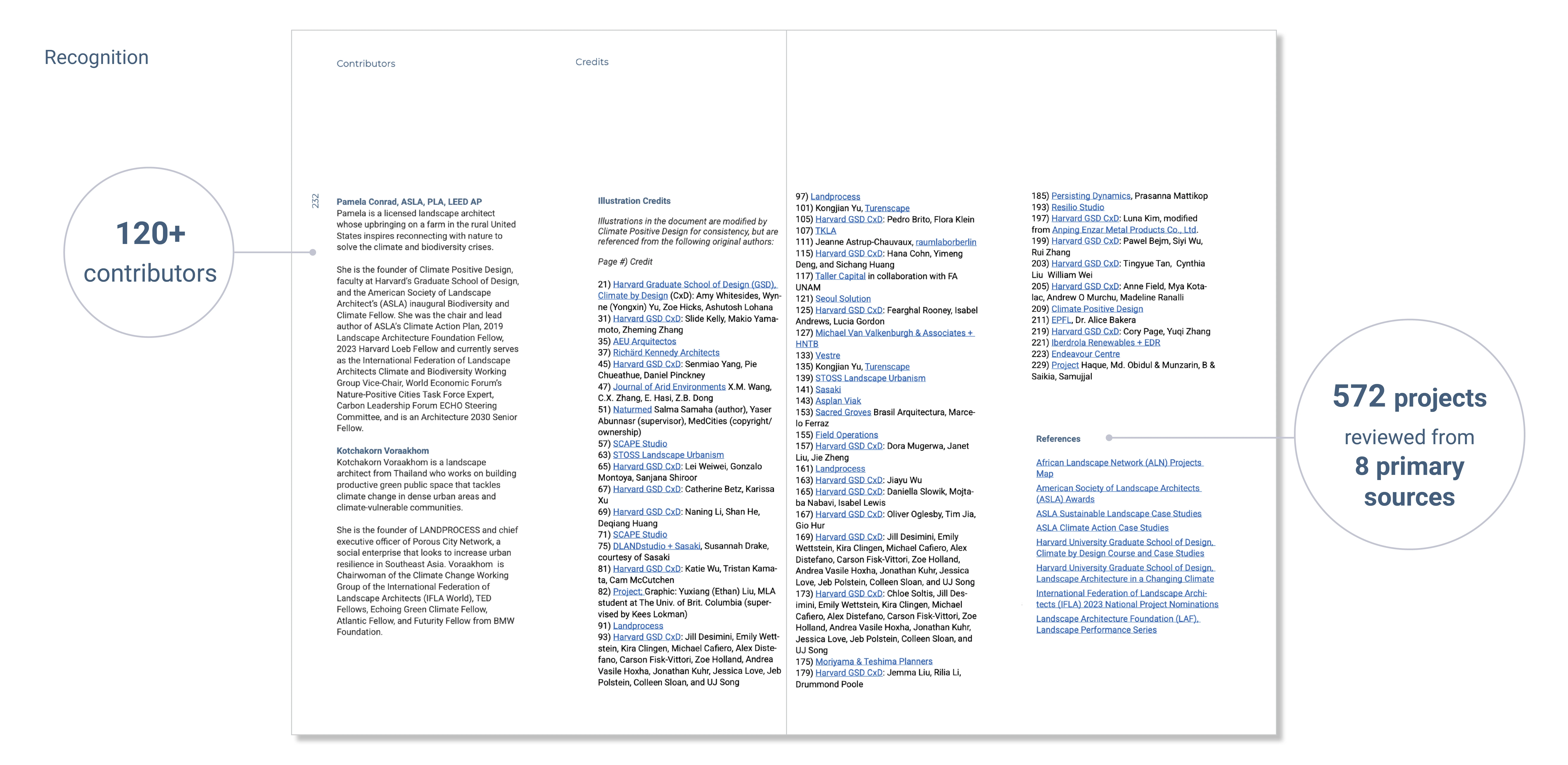 This effort culminated in the publication of WORKS with Nature: Low-Carbon Adaptation Techniques for a Changing World, a guide developed under the leadership of ASLA Climate Action Plan founding Chair Pamela Conrad and UN-award-winning landscape architect Kotchakorn Voraakhom. The guide aims to elevate the role of landscape architects in global climate and biodiversity solutions.