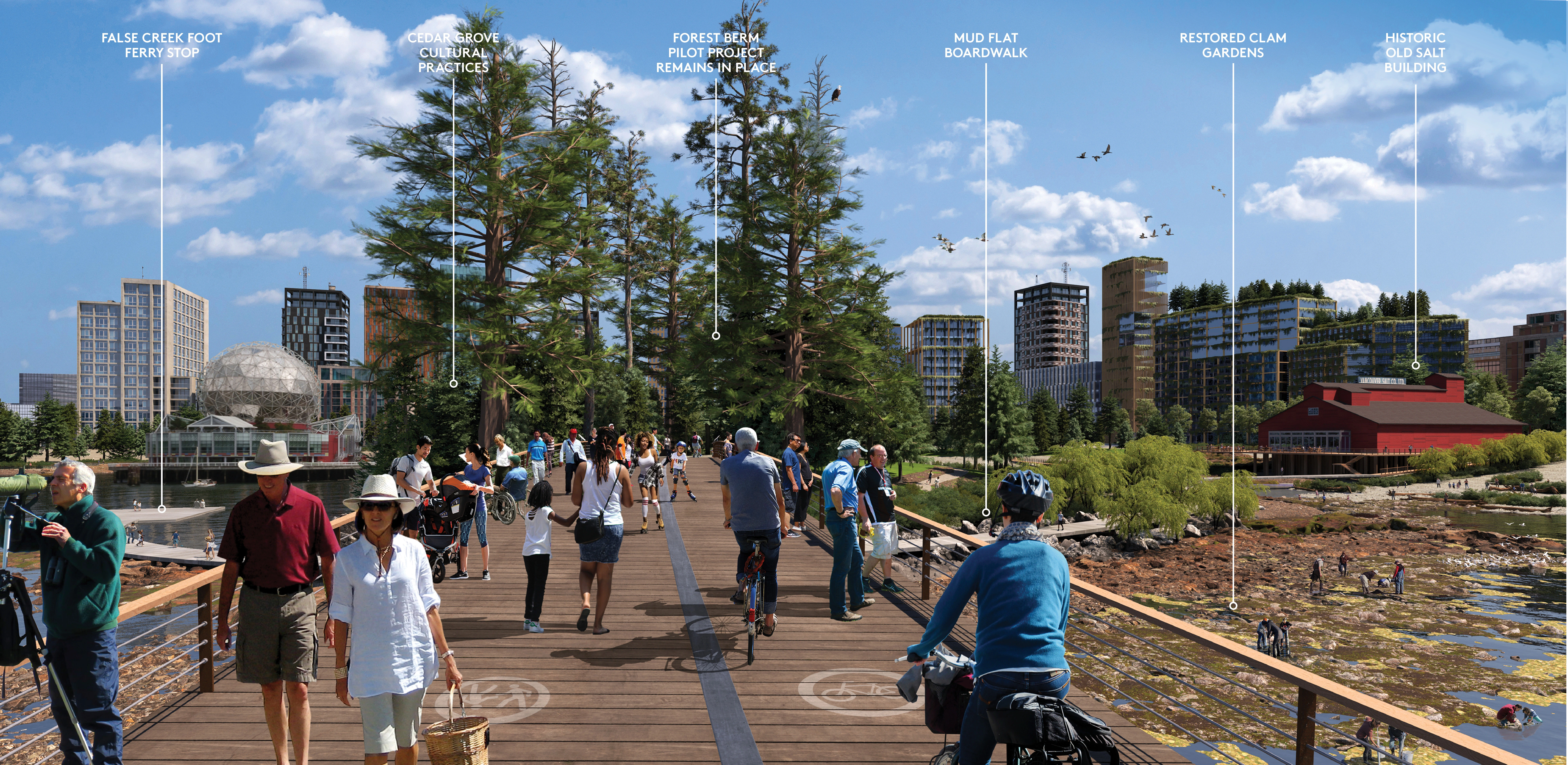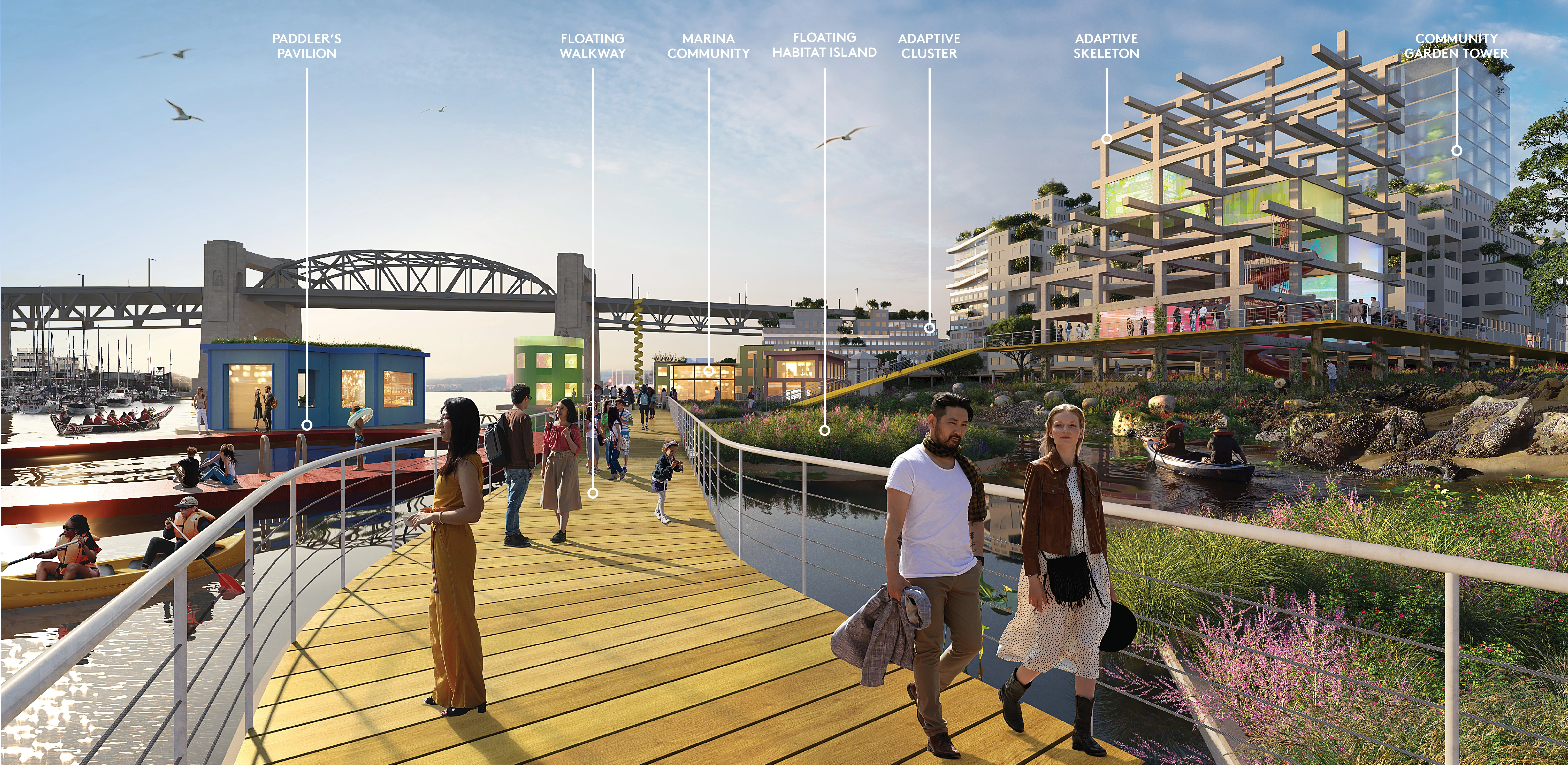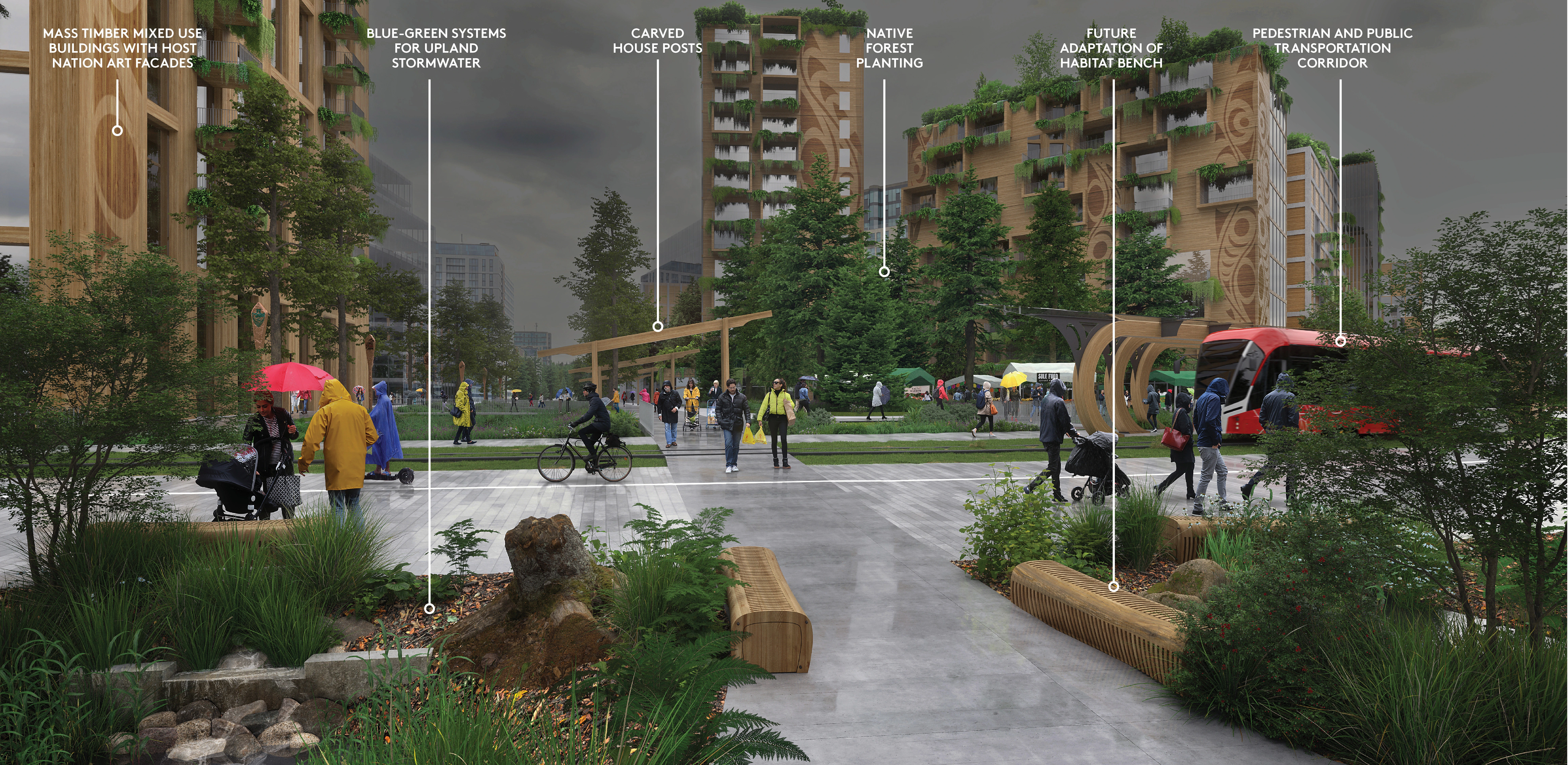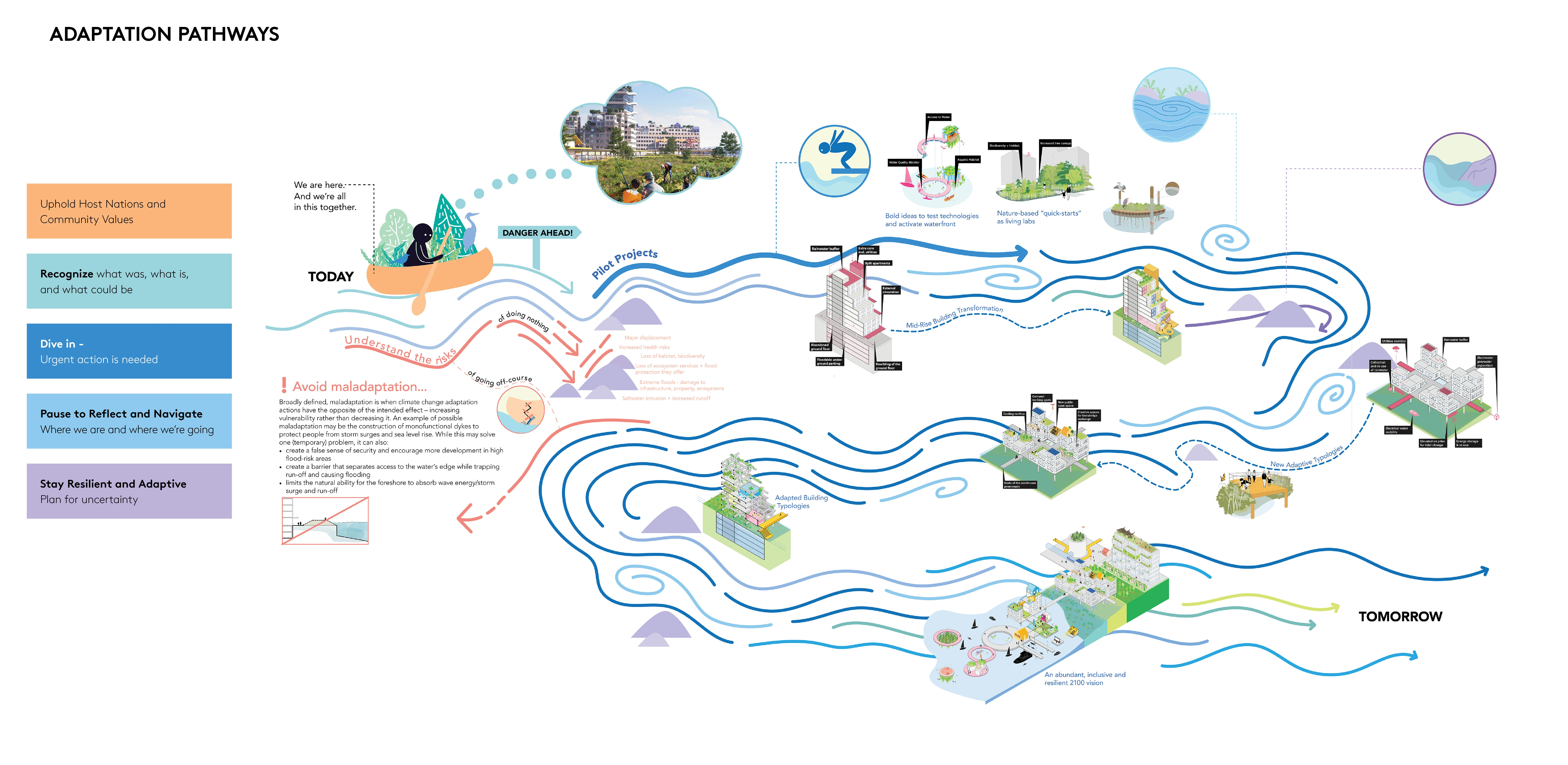Grounded in the city of Vancouver B.C.’s commitment to truth and reconciliation, this nature-based climate adaptation approach envisions a return to the historic False Creek shoreline. A precedent-setting process prompted ongoing, continuous learning between city and province agencies, a youth adaptation lab, cultural artists, designers, the public, and Host Nation cultural advisors. With reconciliation and reciprocity as the foundation, design outcomes represent a future in which Host Nations are active, celebrated partners in the strategic transformation of an ever-changing shoreline over generations. Both visionary and technically informed, this work inspires the practice of adaptation and charts a course for meaningful reconciliation.