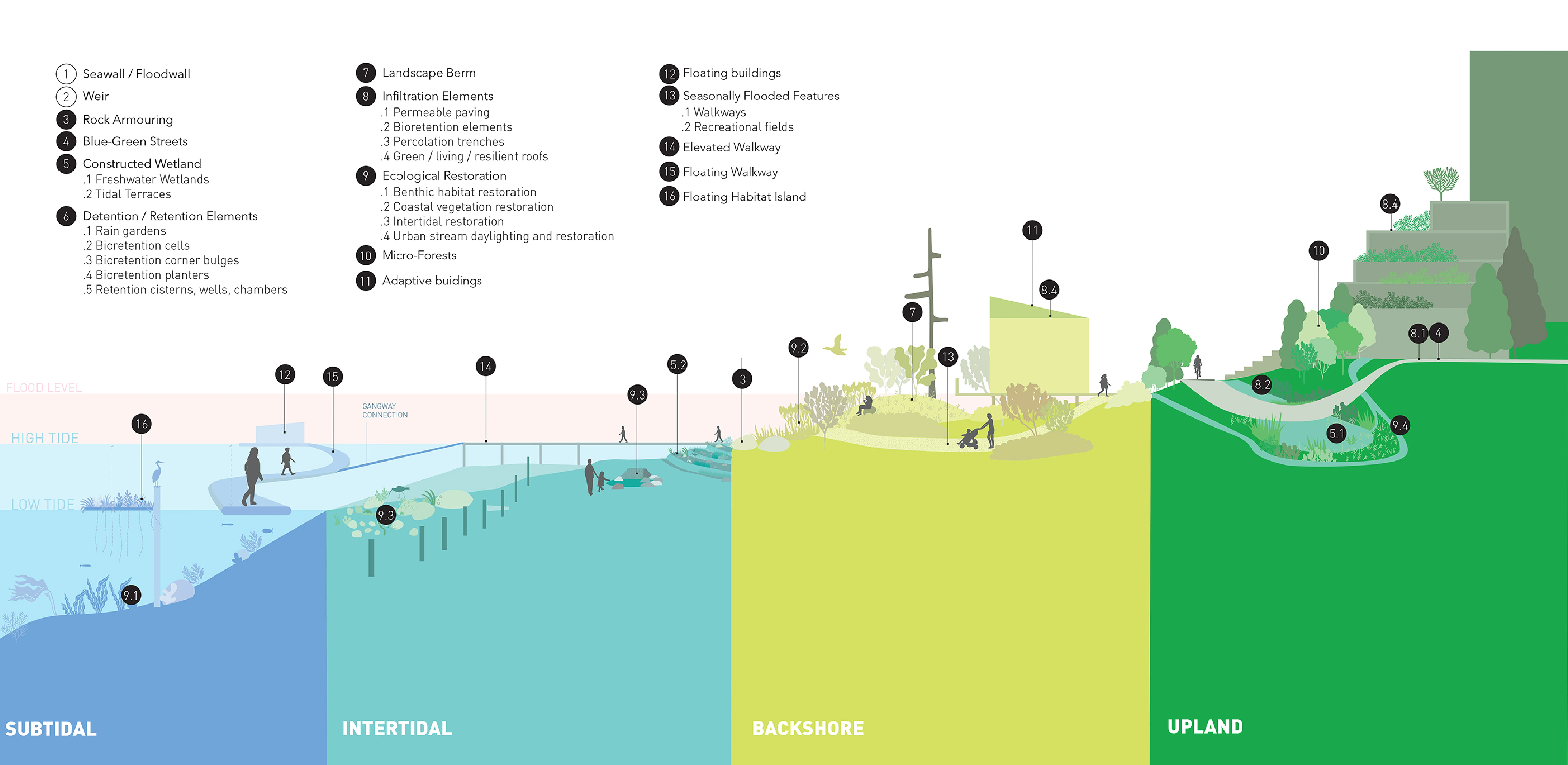 A very collaborative project with a refreshing approach, combining sound planning principles. A plan that seeks to address the harsh realities of sea level rise by working together with host nations to arrive at mutually beneficial long term green solutions.