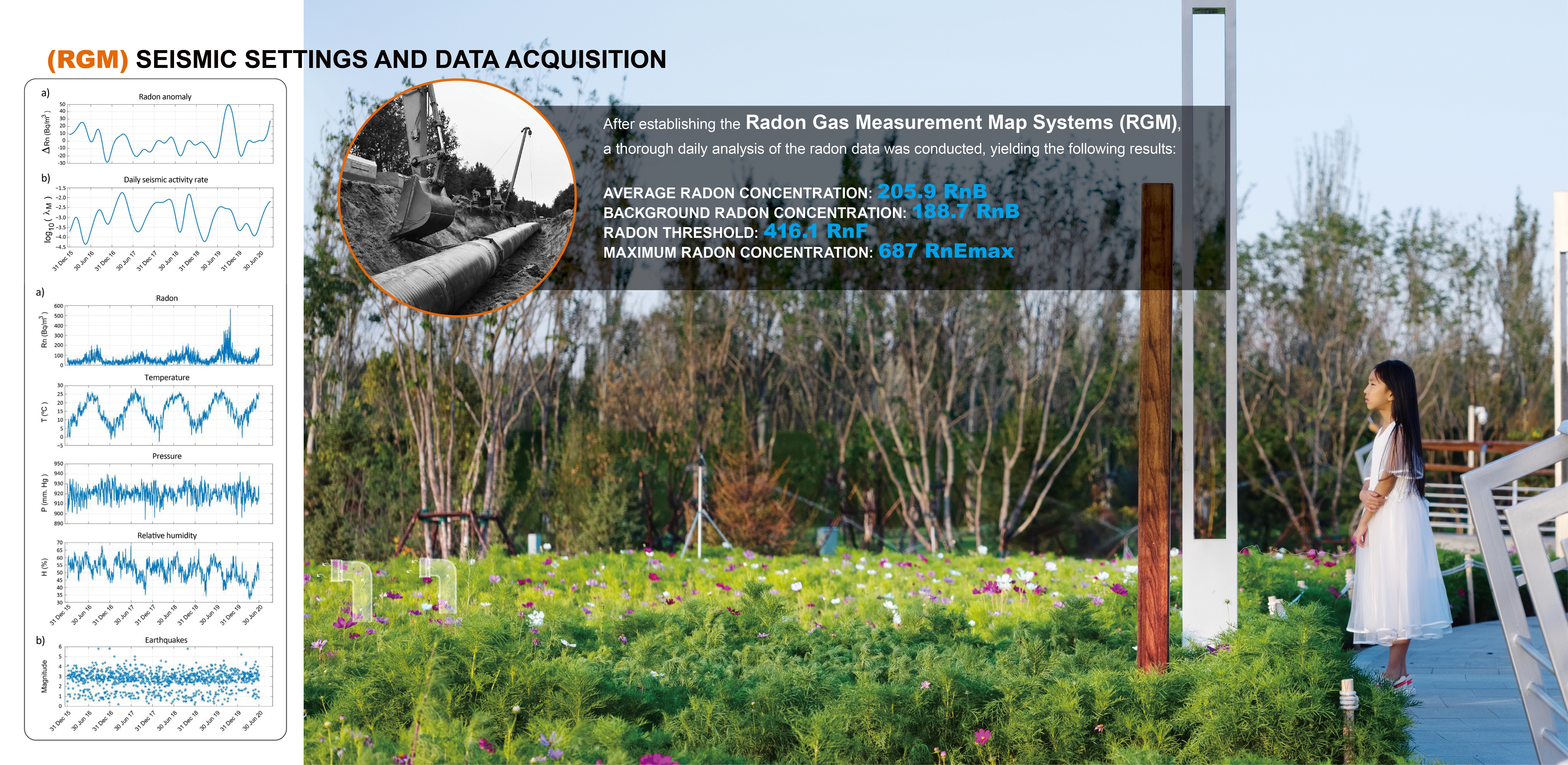 Research reveals that radon fluctuations in seismic-prone regions are key to earthquake monitoring. The radon system along Park’s mountain roads provides critical data, helping disaster management in Longquan Mountain swiftly identify high-risk areas during seismic events. A network of Radon Gas Measurement (RGM) units continuously tracks radon fluctuations. Data from 15 collectors is processed at a mountain-based monitoring center, generating color-coded risk maps for rapid
