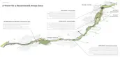 Rather than imposing a design onto the river, we asked what would happen if the river informed and shaped the design—much like it did for the Gabrieliño people who once lived along its banks. Several design options were considered, from complete channel removal to more adaptive, incremental approaches. The strategy we developed balances hydrologic resilience with ecological restoration: introducing wider, more diverse channel systems and floodplains downstream, while preserving the dam and enhancing diversion infrastructure to simulate a more historic flow regime. Implementation would unfold in phases. By restoring one section at a time and monitoring how the river responds, we can adapt as we learn. This slow, seasonal recovery process allows for deep community involvement—schools and local organizations can take part in ongoing maintenance, education, and stewardship, strengthening their relationship with the river and each other.