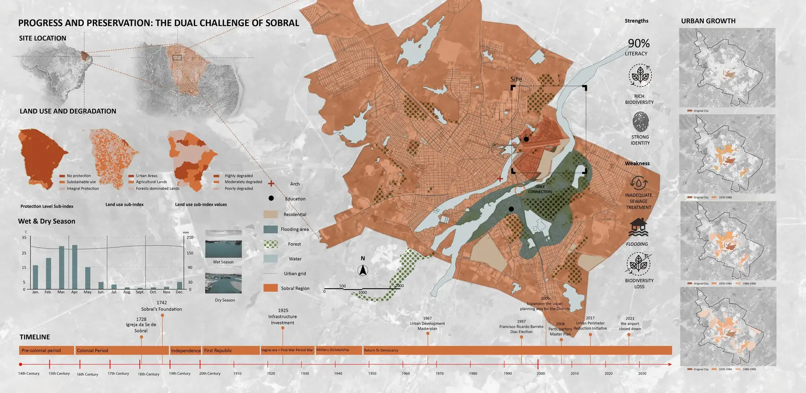 Sobral lies on the eastern flyway, witnessing the migration of various bird species. The city is filled with opportunities to interact with nature like the nearby Heron's lake but lacks access, leaving green spaces fragmented. The wetland plaza interweaves urban wetlands with communities while being adaptable to the city's varying seasons—extreme dry and extreme rainfall.