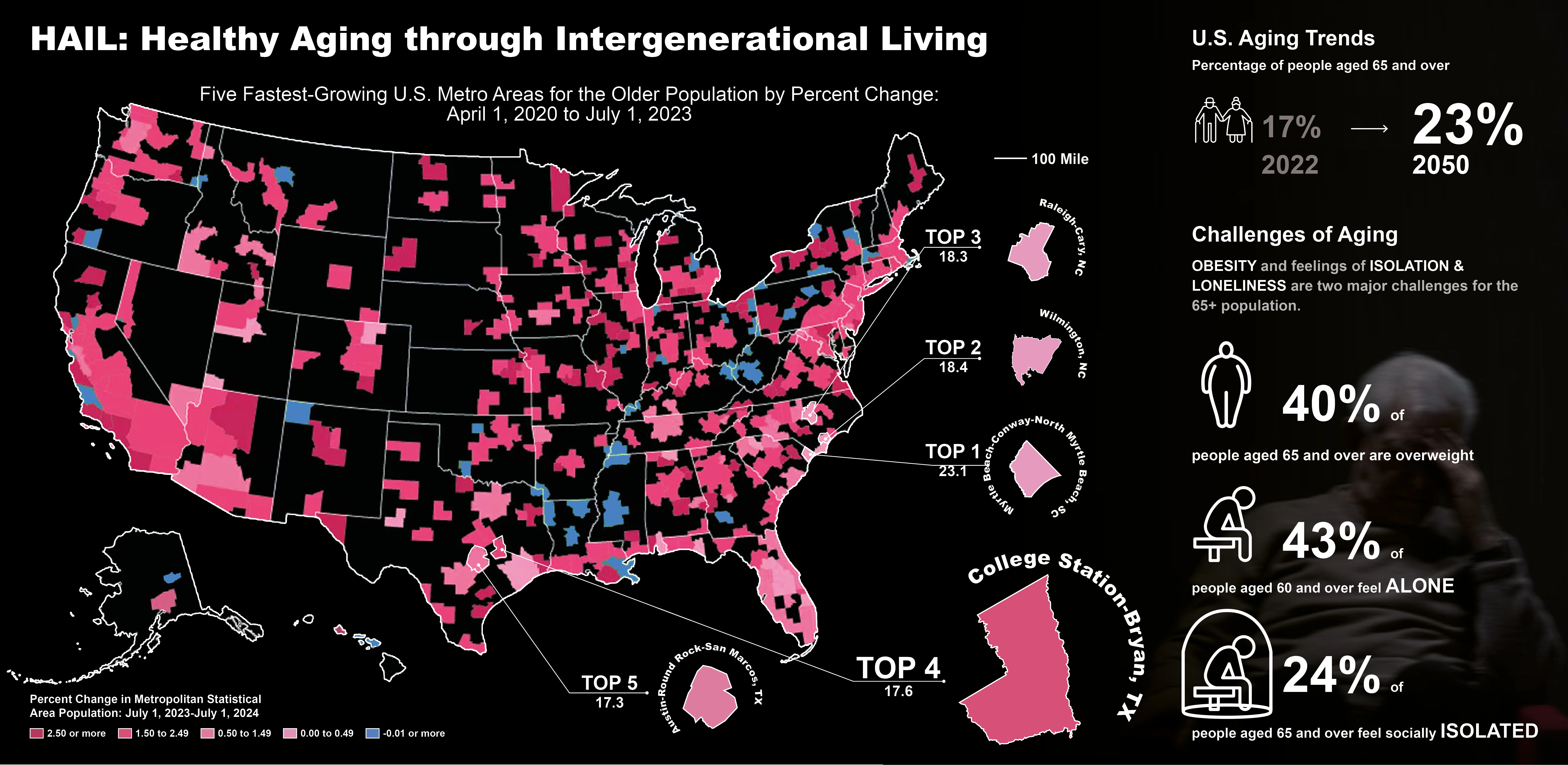 With a rapidly aging population, loneliness and social isolation among older adults have become urgent public health concerns. The literature suggests that intergenerational interactions can help address these concerns by fostering social connections and enhancing well-being. This project represents an innovative effort to develop a toolkit for age-inclusive community design. We assessed the site using GIS data and iCAT-park, a tool developed by our team. Low-scoring site features and elements were improved through the toolkit supported by 8 environmental design strategies. Post-design evaluation confirmed its effectiveness in enhancing intergenerational engagement, while addressing issues related to stormwater management and heat safety.