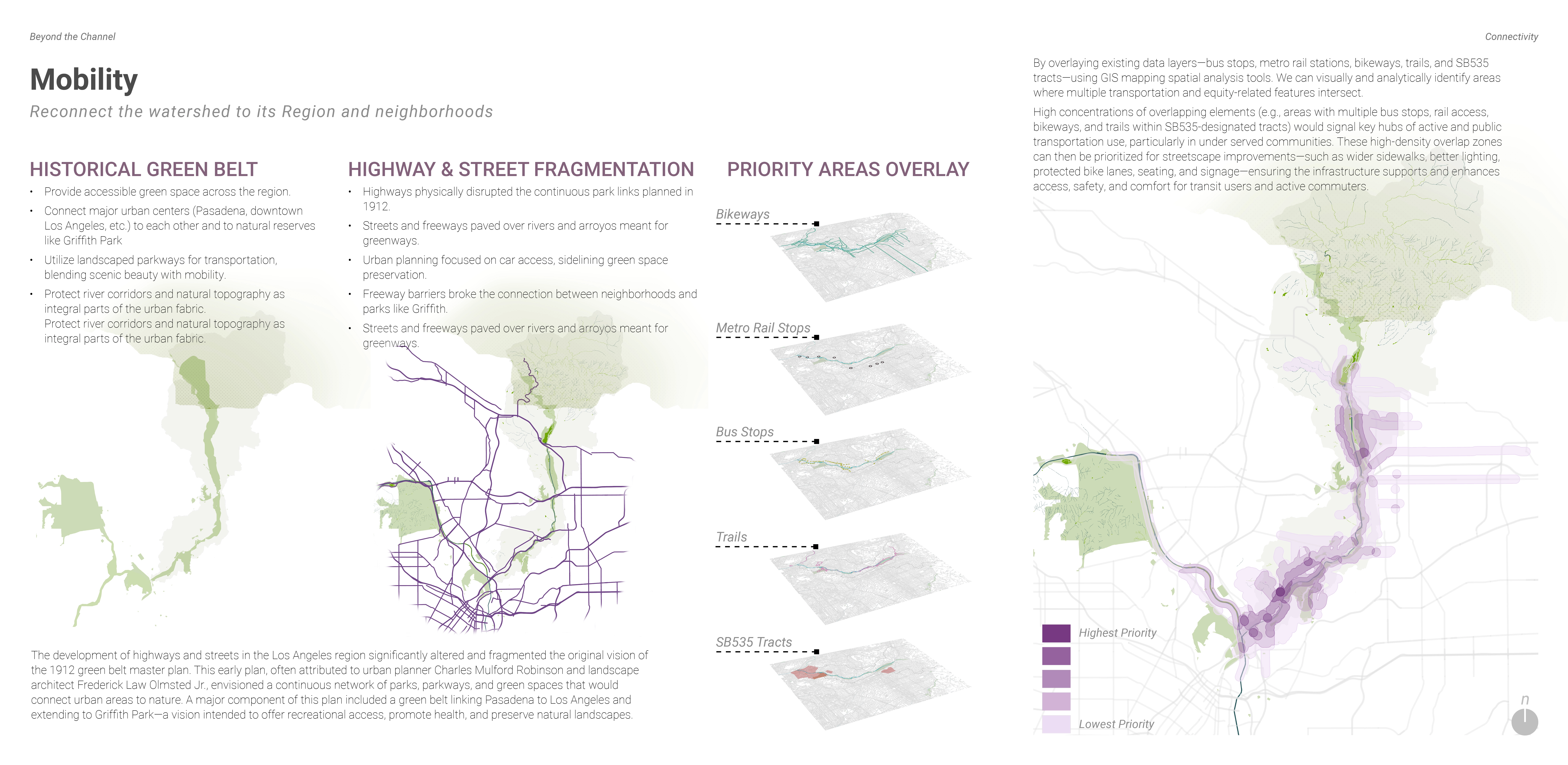 In parallel, we collected social data by creating park user surveys and conducting informal interviews on-site. Our visits to the Arroyo—on foot and by bike—gave us firsthand knowledge of how people interact with the space. From this, we learned that most Central Arroyo users engage with the site recreationally, often unaware that the Arroyo Seco is a river. In contrast, visitors to the Upper Arroyo and Hahamongna Watershed Park demonstrated deeper awareness and concern for ecological health. This revealed a powerful design opportunity: to integrate the river into public life not only through landscape restoration, but through education. By connecting the Arroyo to nearby schools, interpretive centers, and programming, we hope to increase environmental literacy and long-term stewardship.