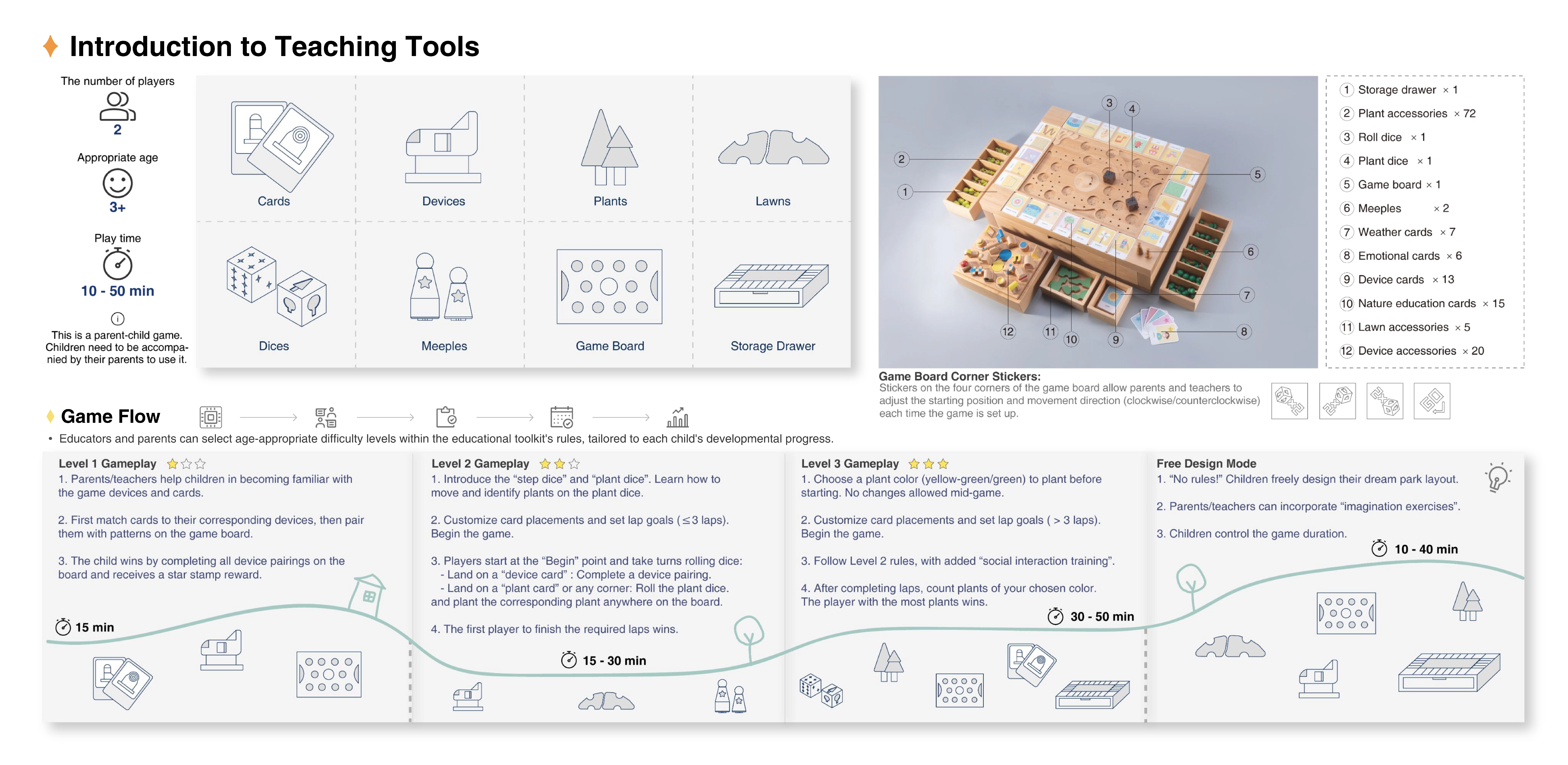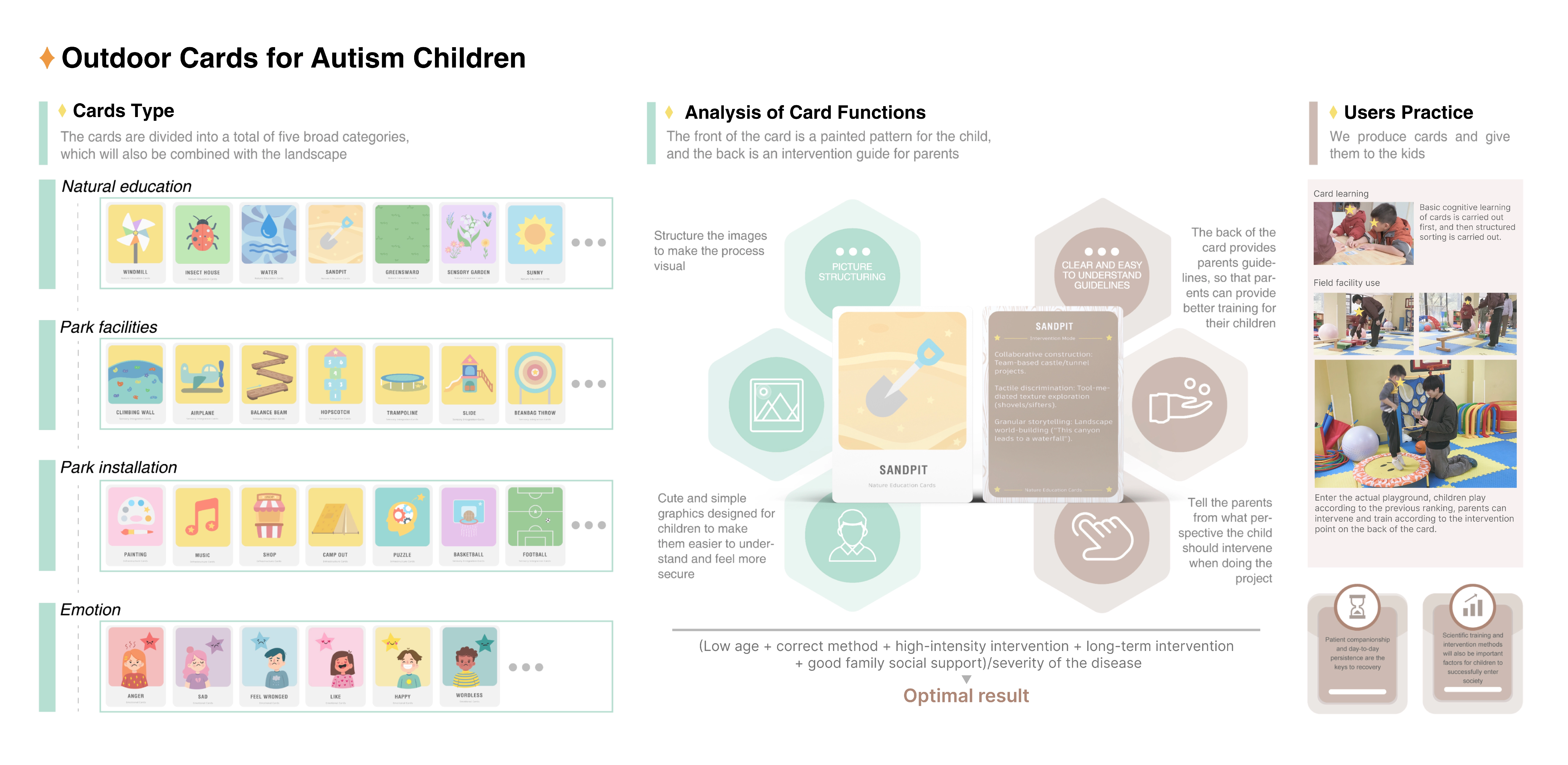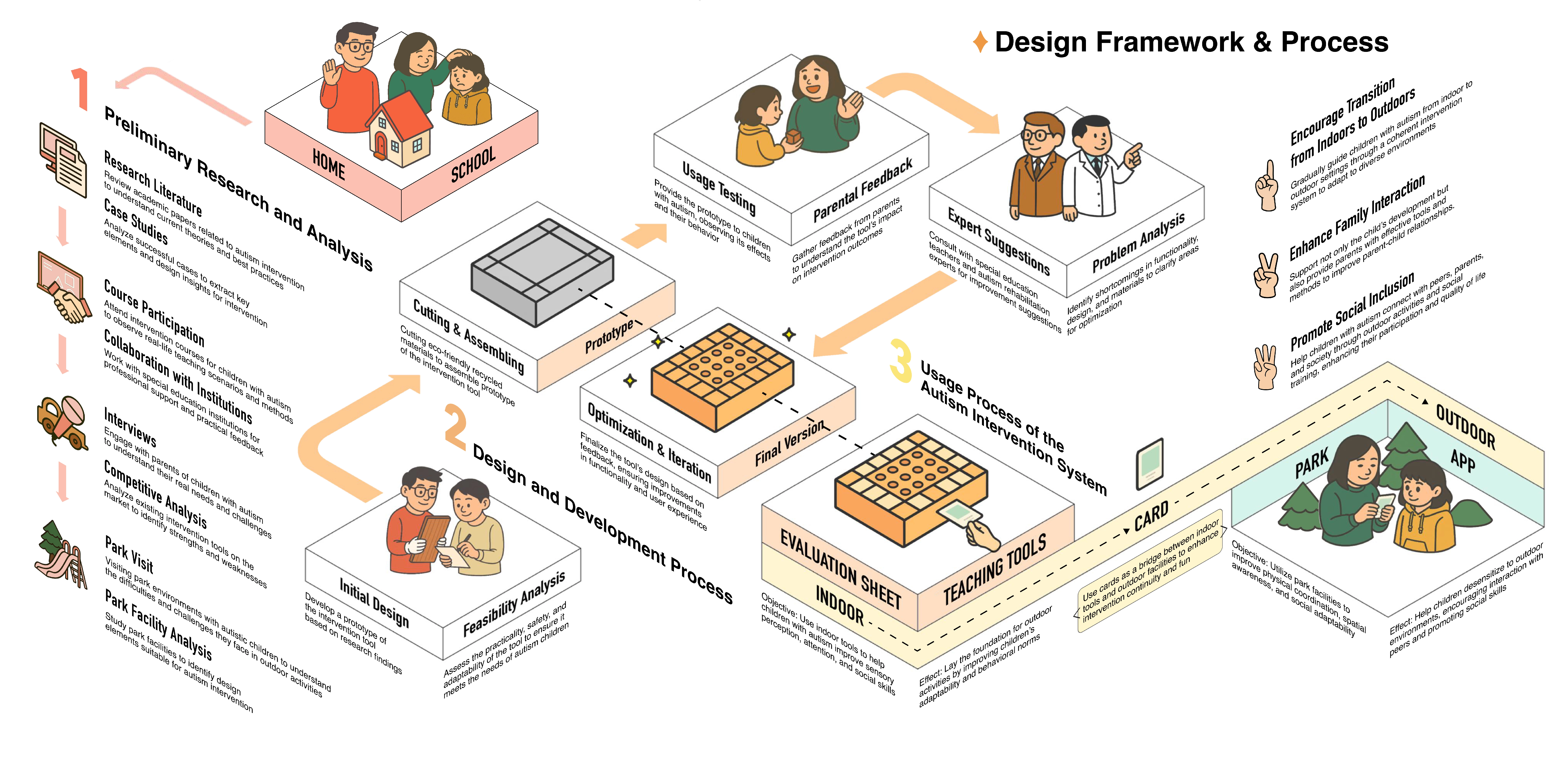 By introducing scientifically designed intervention tools that seamlessly connect indoor activities with park environments, we provide holistic developmental support for children with autism.