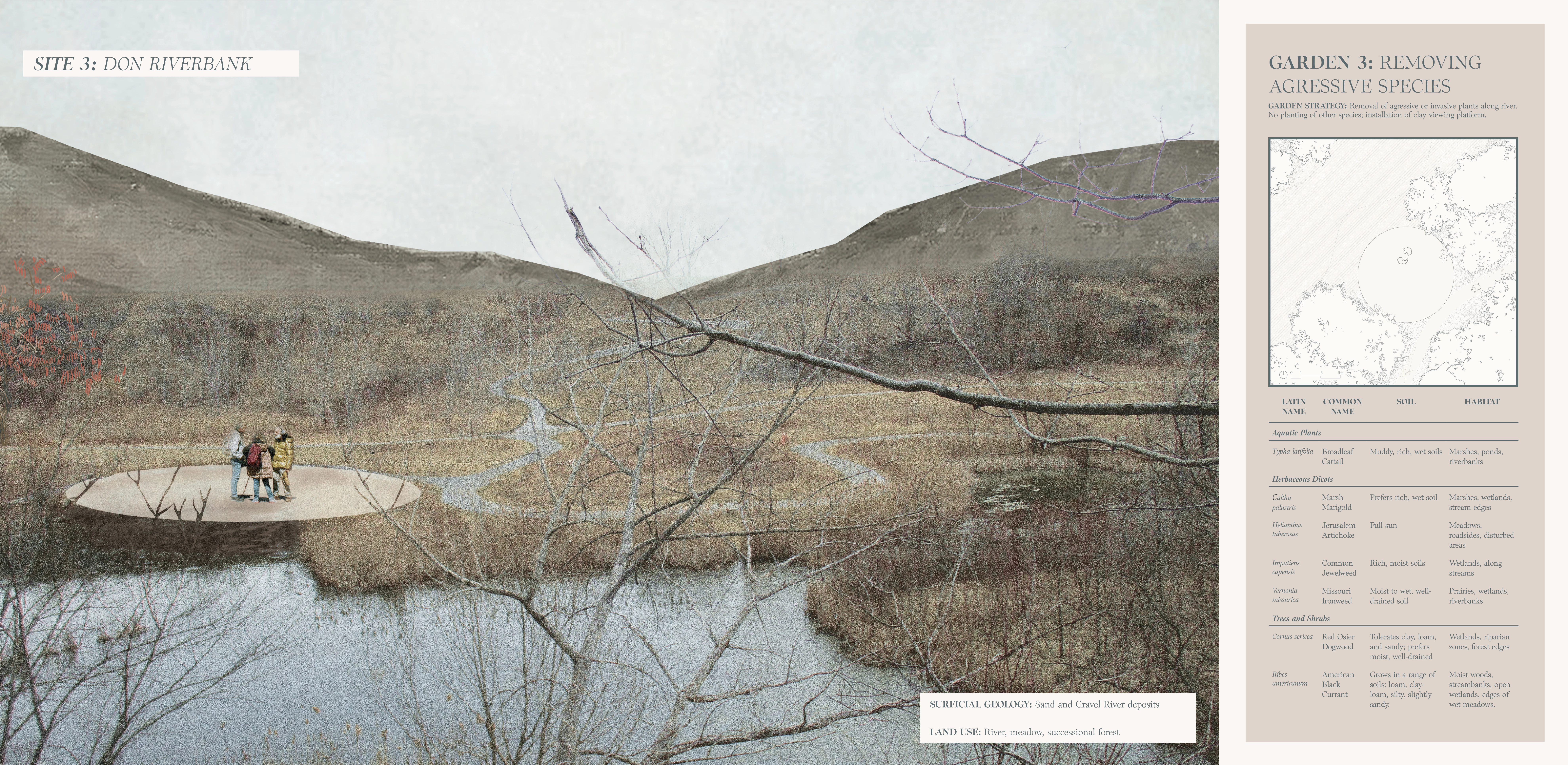 Site 3: Don Riverbank – A river’s-edge clearing where invasive species are removed, but no new plants are introduced.