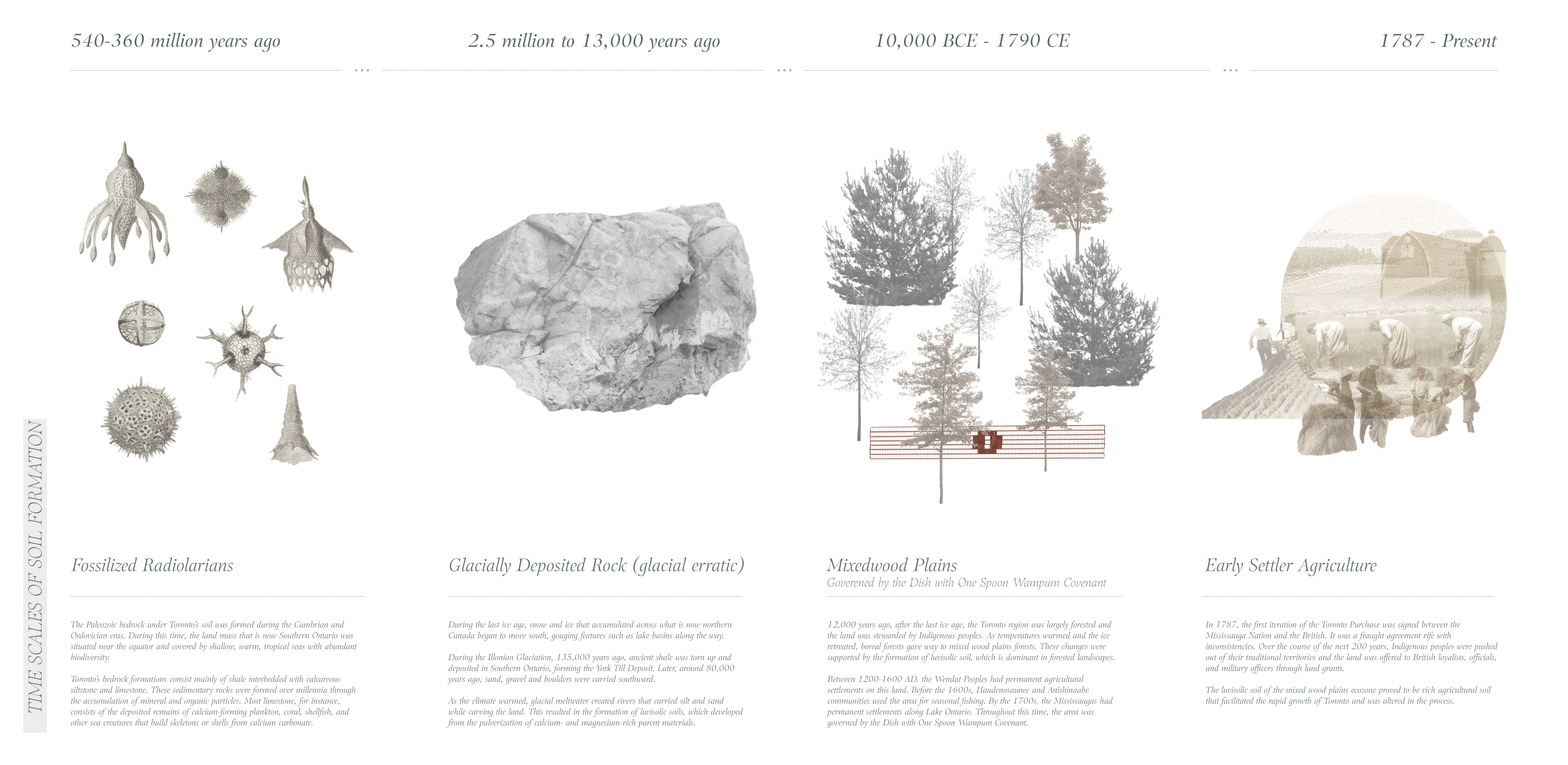 Urban soils reflect life in cities. Though often considered opaque, obscure, or degraded beyond value, they are complex systems that hold the residual impact of human activity over time. Using Toronto’s Lower Don River Sub-watershed as a case study, this project asks:
