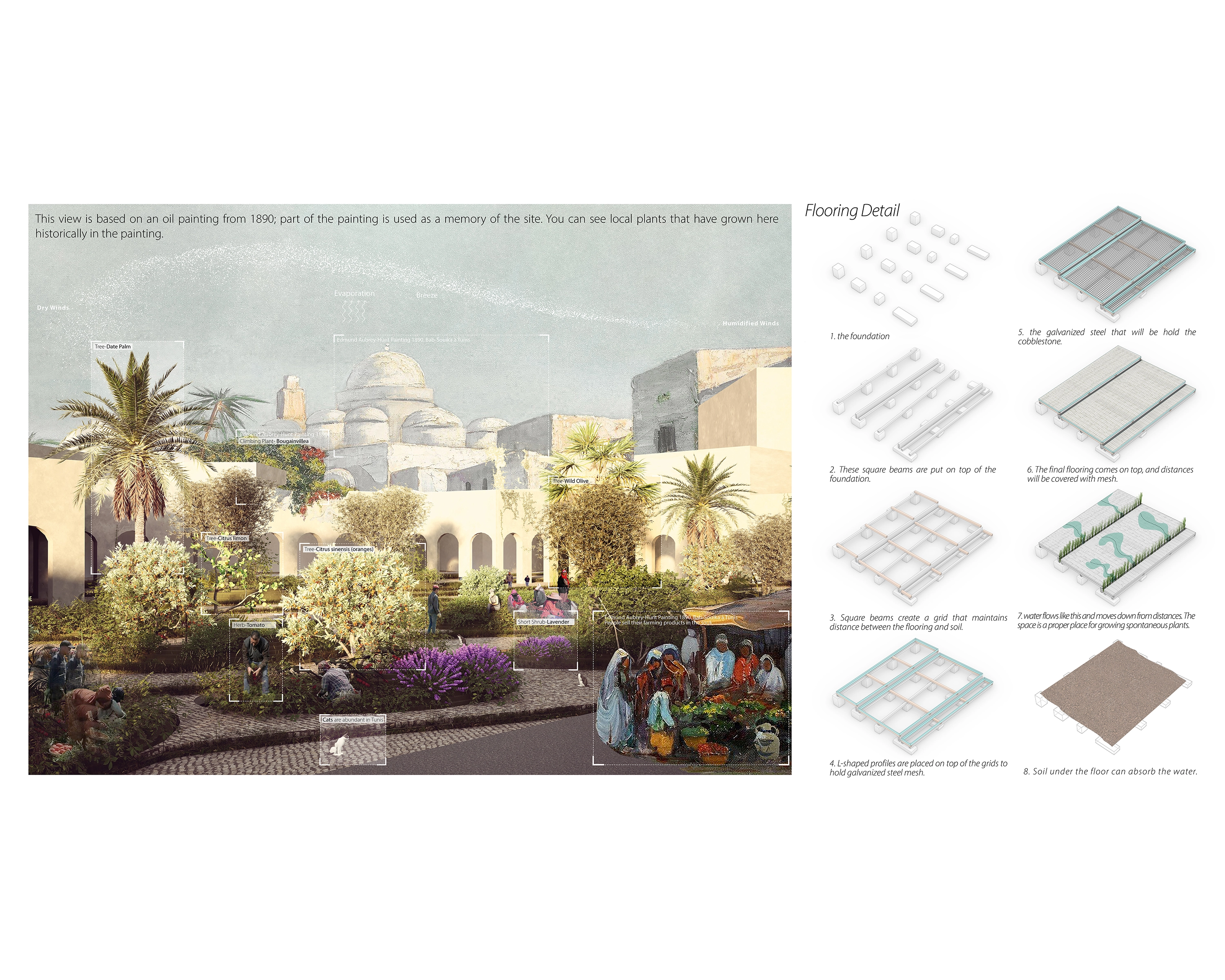 Exciting multi-scalar exploration of urban future, with a great selection of site. The jury appreciated the research that went into this as well as working from an historic painting to inform the outcome of your project. The shallow water dictionary concept is very strong. Oasis effect is very important and often overlooked. Some concepts may be expensive and impractical to implement. Drilling down from macro to micro is really well done.