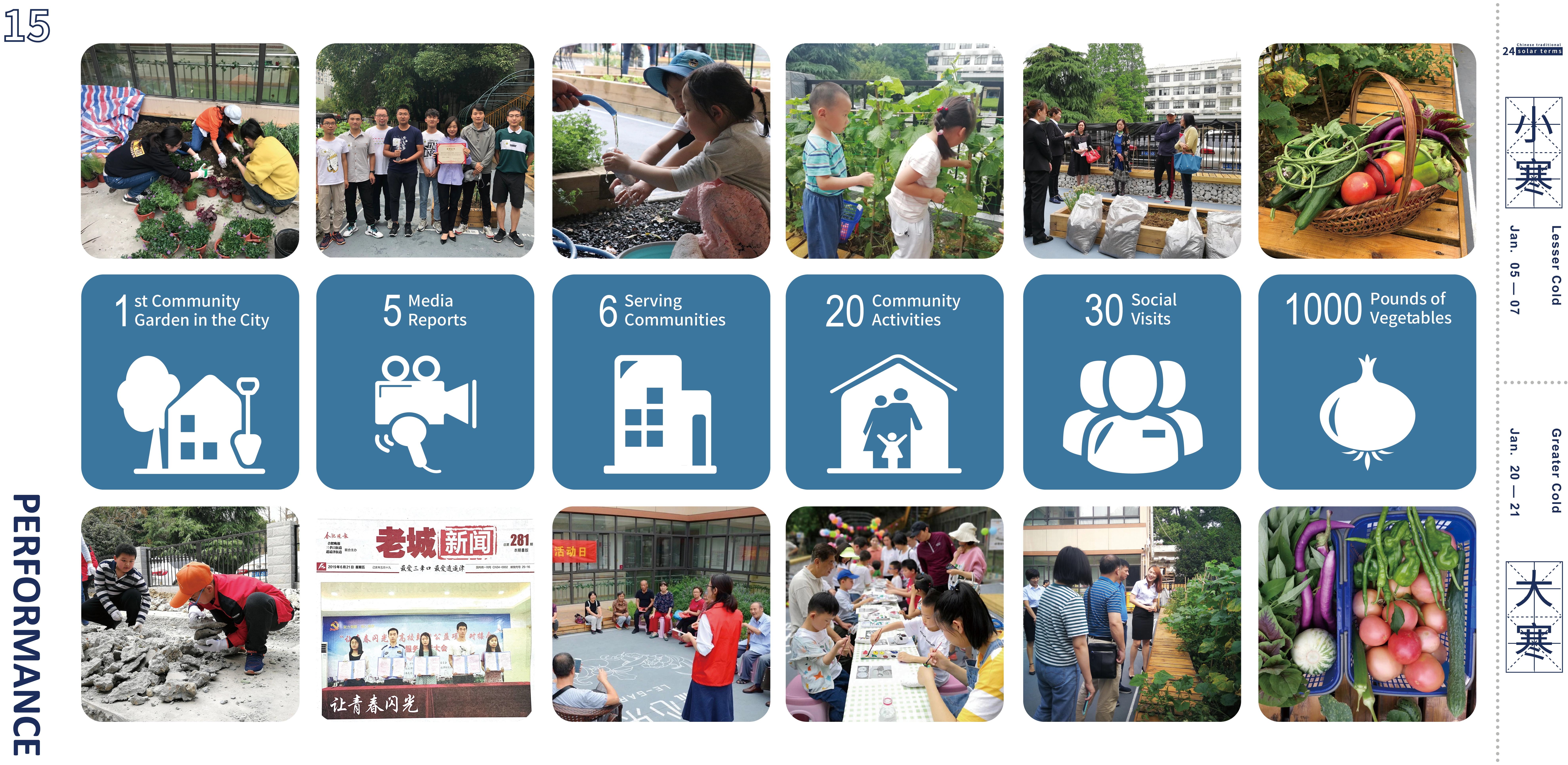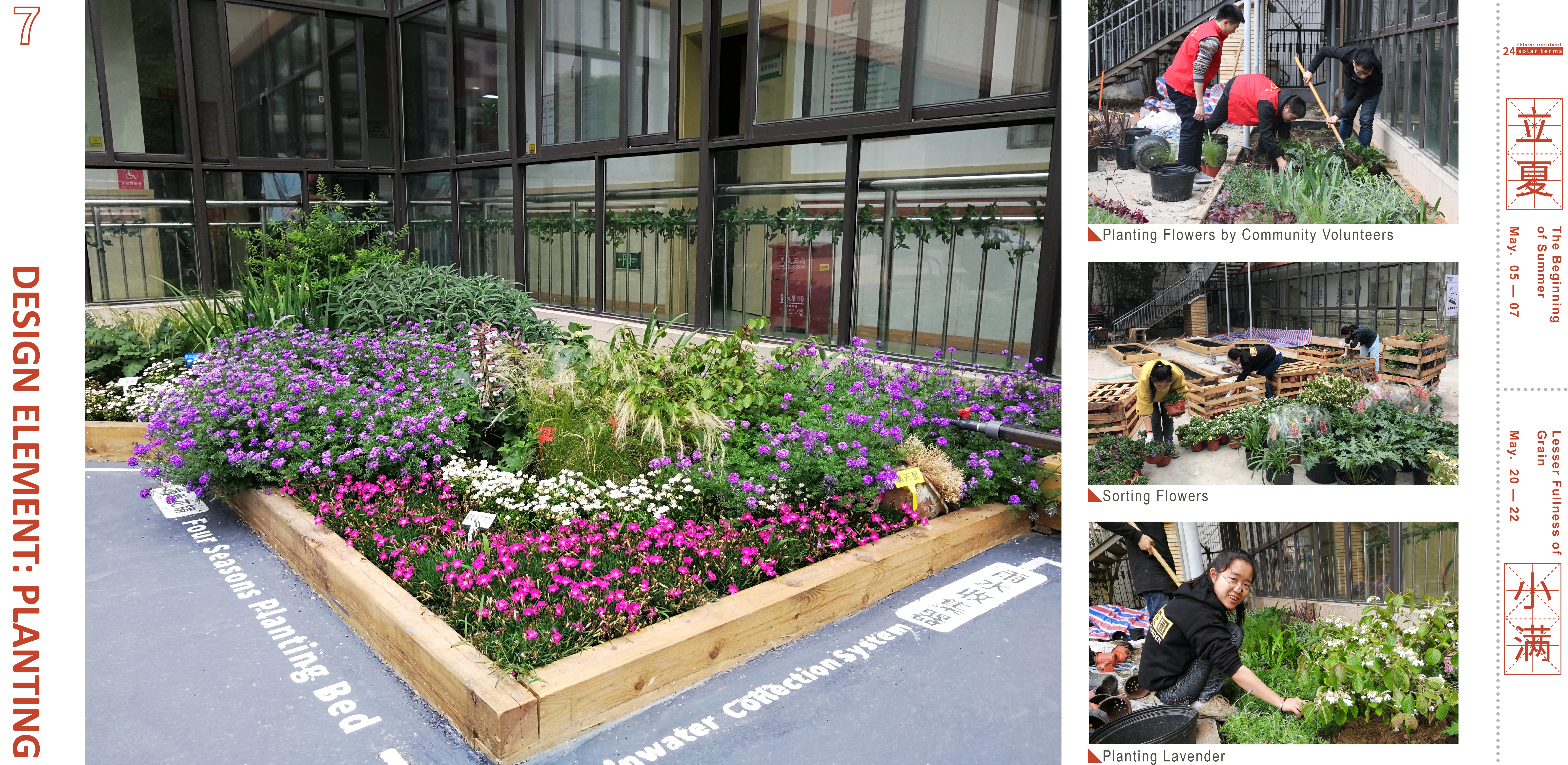 Volunteers from elementary school nearby were involved in the construction of the stone gabion, while some community residents, staff from nursing home, some nursing home elderly and their families participated in the planting activities. After the garden was completed, the team regularly provided maintenance services for the garden, such as repairing, pruning plants, cleaning the rainwater collector and repainting and organized several community activities according to traditional Chinese Solar Terms. In addition, two professional electricians in the community Contributed to the success of the Le Garden project. -