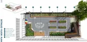 Multifunctional Stage: The multifunctional stage is an elevated deck between the two year-round planting areas to host various activities.