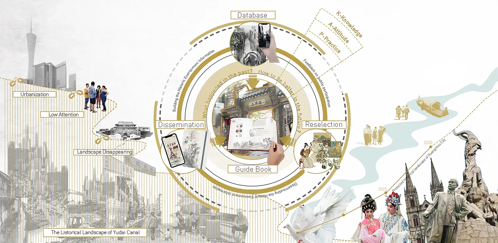In responce to some high-value historical landscapes of Guangzhou city being destroyed by the rapid urbanization process, the "Invisible Guangzhou" Historic Environment Education project takes the Yudai Canal, the moat of the ancient Guangzhou city as the research object. It has built a Historic Environment Education Platform from the bottom-up perspective of public participation, and explored the methods and ideas of Historic Environment Education.