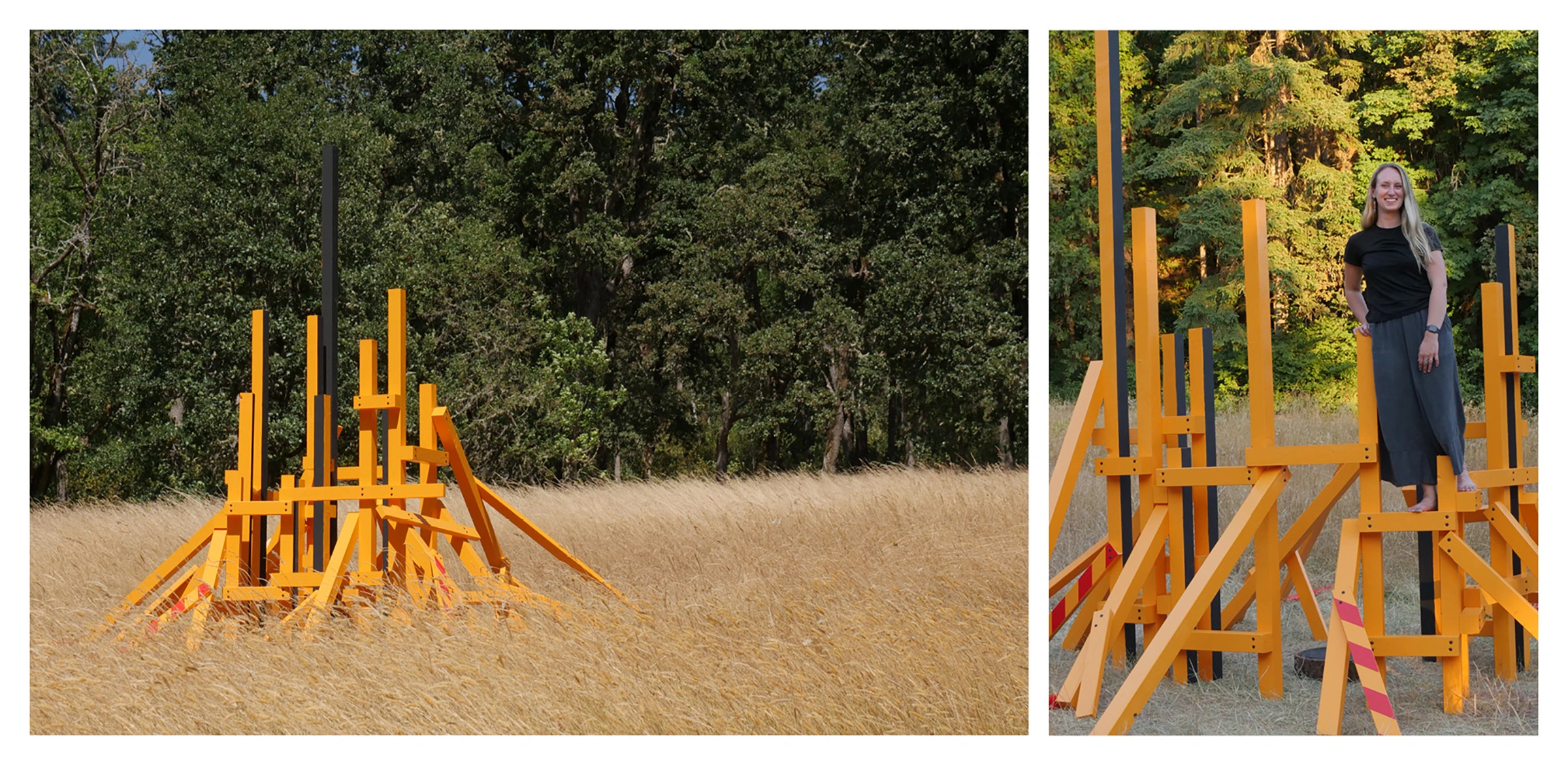 In the final design phase, eight recovery-themed installations were designed, fabricated, and installed at Mt Pisgah Arboretum, a Eugene park which contains fire-adapted oak and prairie ecosystems. An opening reception and dinner invited the community to view the installations and learn about the wildfire recovery themes presented. The following are the student’s artists’ statements for each installation.