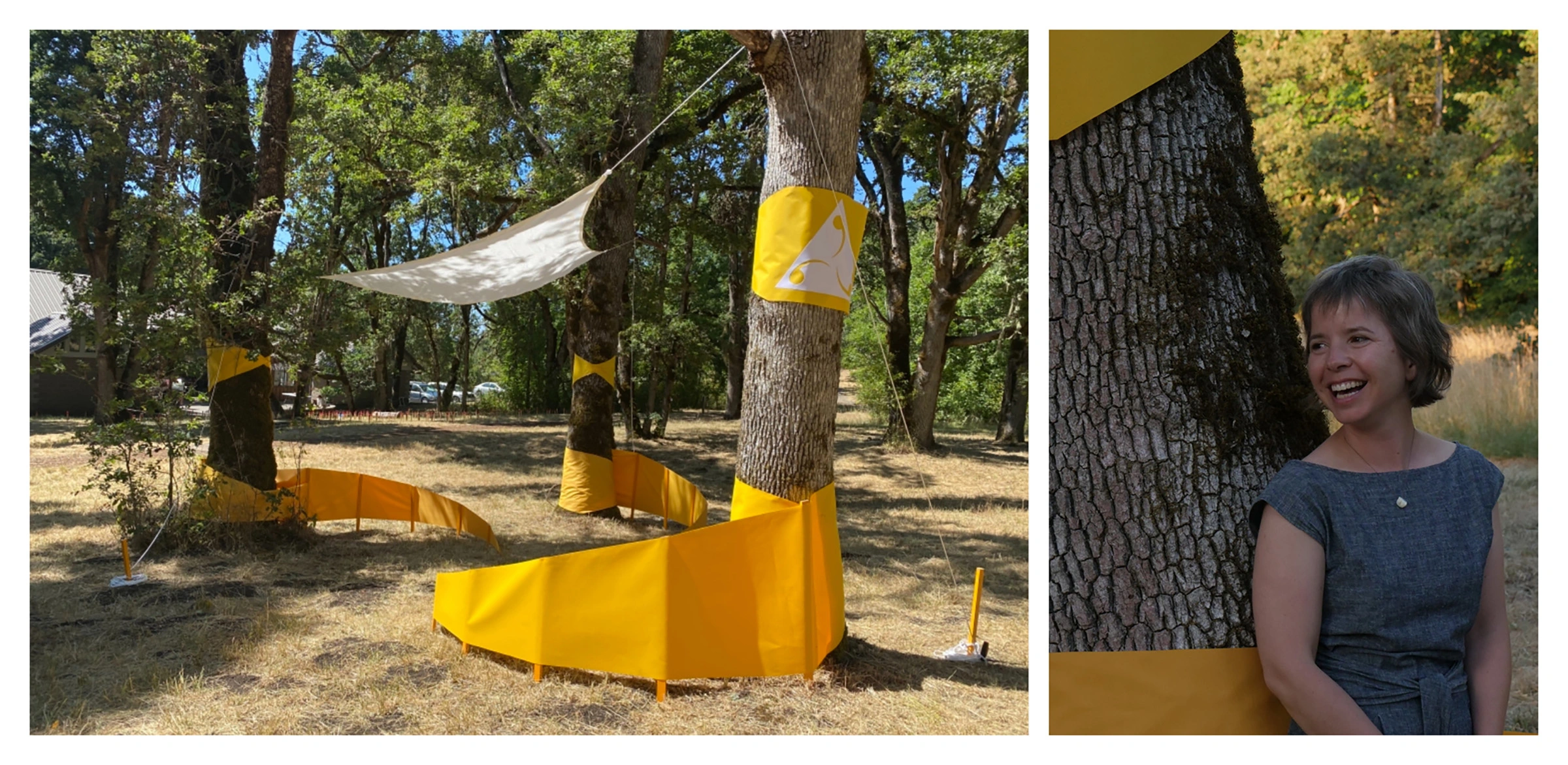 It is our hope that these installations will communicate the optimism and energy we absorbed from visiting wildfire burn sites.  Standing in the remains of the Holiday Farm fire on the first day of the Field School, with temperatures hovering around 115 degrees, it was hard to feel hopeful, until we looked underfoot and saw the burgeoning vegetation covering the soil, starting the transformative cycle of succession once again. We were similarly transformed by connecting with and learning from these dynamic landscapes
