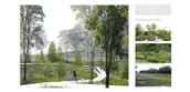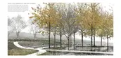 North Atlantic Coastal Plain Basin Swamp and Wet Hardwood Forest - The wet hardwood forests, originally located in low-lying areas that are poorly drained, have relatively shallow depressions and are often influenced by groundwater and overland water flow. In this project, the existing open lawn is partly manipulated to include several narrow linear channels, planted with different species. There will be a small ponding and flowering rain garden in this collection during the wet season. In the dry season, the corridor of different trees appears in different colors, and people can walk on the open lawn. The strong linear planting pattern aims to provide accessibility and clear views.
