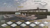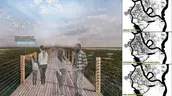The proposal challenges the plan for a hotel on the high ground near the Battleship, North Carolina, instead using this land for a Visitors' Center. The Center is a major node, introducing visitors to the complex natural systems at work throughout the island and providing access to the reimagined dredge spoils and historic rice canals as the launch point of our park ferry system. Accessible by a ferry from downtown Wilmington, the Center draws people to the island.