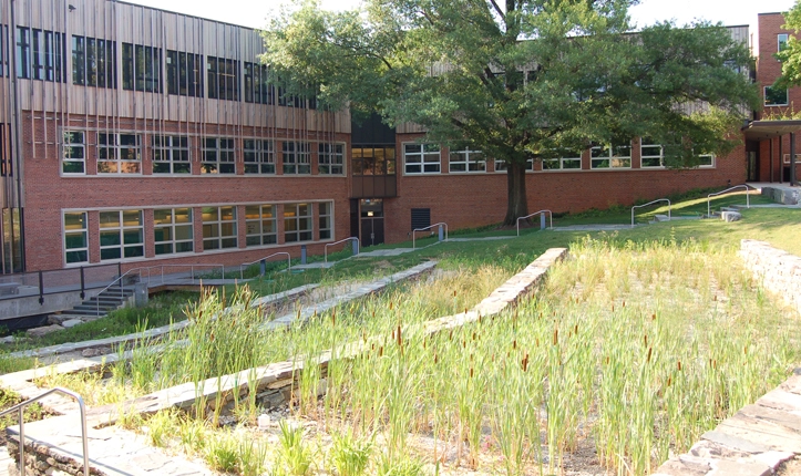 - On-site sewage treatment, water re-use, and water-efficient native plants reduce the school’s water consumption by 93 percent.