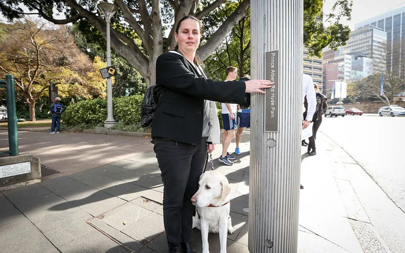 Multi-sensory wayfinding: Too often, vision is the only method of navigating the neighborhood. High-contrast, tactile paving, and auditory crosswalk signals can aid in wayfinding for blind pedestrians or people who have low vision and deaf or hard of hearing pedestrians. For safety on busy streets, it is crucial that material changes in sidewalk paving, which indicate to blind people and those with low vision the different zones of the sidewalk, be used consistently throughout the neighborhood. QR codes and accessible online transit planning tools are also important navigational support tools.