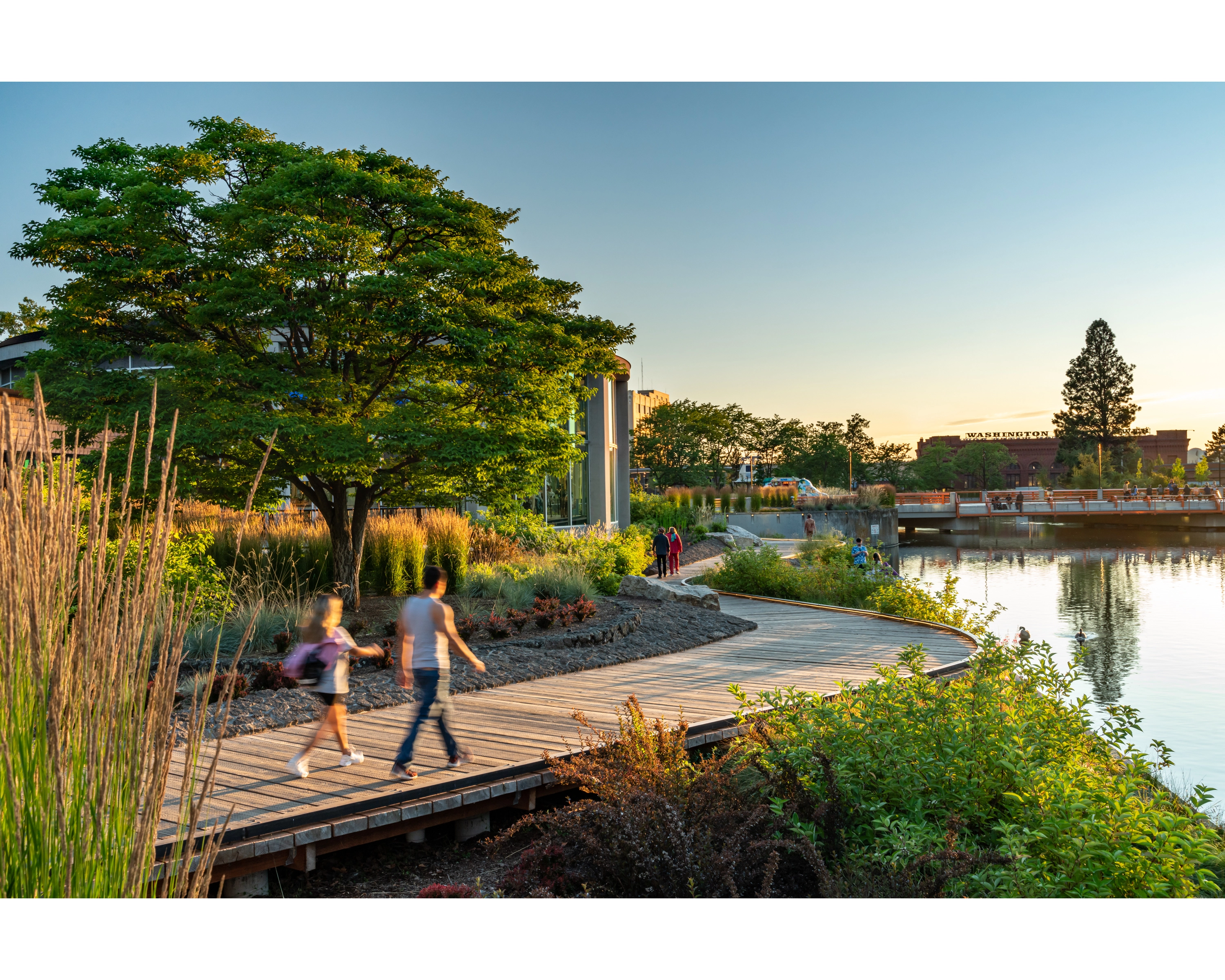 Landscape design directly affects health and well-being. Well-designed parks, streets, campuses, and neighborhoods help people stay active, relieve stress, and connect with nature—all essential for physical and mental health. Landscape architects use evidence-based strategies to create spaces that support movement, reduce heat, improve air and water quality, and enhance social connection. These environments contribute to healthier, happier, and more resilient communities.