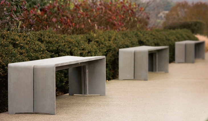 Bevel Benches and Bevel Litter Receptacles. These two highly versatile designs also encompass the latest addition to the F+S materials palette: TENSL Ultra High Performance Concrete (UHPC). Known for its exceptional strength and durability, TENSL UHPC can be cast into beautifully thin profiles that are relatively light in weight yet able to withstand the most demanding outdoor environments.