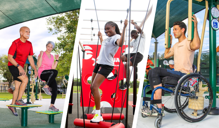 Fun, outdoor social activities and ways to promote overall health should be available for everyone. That’s why Greenfields Outdoor Fitness is on a mission to get entire communities involved in engaging exercise that everyone can do together, at any time, for free! Greenfields has fitness solutions for people of diverse ages, abilities, and interests: