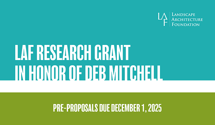 The Landscape Architecture Foundation (LAF) is now accepting pre-proposals for the next grant cycle, with research to start in summer or fall of 2026. Pre-proposals are due December 1, 2025.