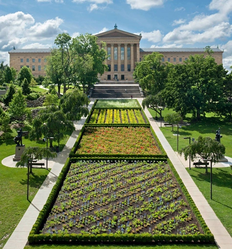So what role do landscape architects play in helping public art work its wonders? According to Weiler, landscape architects help frame these creative experiences or even implement them. In the case of Sol LeWitt's Lines in Four Directions on Flowers, a landscape work the artist created many years ago for the space in Fairmount Park in front of Philadelphia Museum of Art, it was OLIN who made the work actually happen. OLIN translated the conceptual work into plants, creating "an appropriate palette" for the site-specific work. For OLIN, Weiler said, the job is to "honor gems of another nature, not distract or add to the experience." In fact, for their recent work updating the gorgeous Rodin museum in Philadelphia, they undertook a "subtraction of the landscape."