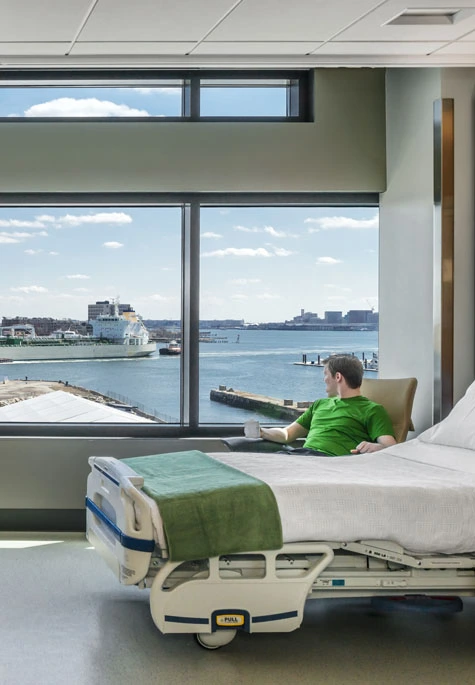 In the 1980s, Roger Ulrich discovered hospital patients recover faster and request less pain medication when they have views of nature. Spaulding Rehabilitation Hospital, built on a former brownfield in Charleston's Navy Yard, and MGH's Yawkey Outpatient Center, both in Boston, seem to be guided by this essential finding.