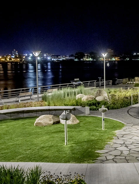 In warmer months, the hospital puts recumbent bikes on the waterfront harbor walk. Rails along the walk were specially designed so people in wheelchairs can use them to pull themselves up.